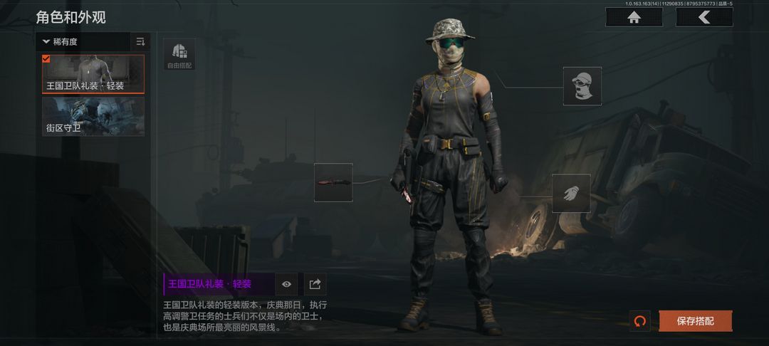 4刀2皮3金枪,瑞兔折刀,突击匕首,王国卫队礼装轻装,街区守卫,包络战术AKM,旗帜AEK,旧王圣谕