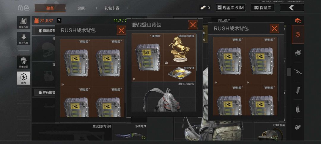仓库价值110m一个急袭弯刀刀皮还有些金枪皮