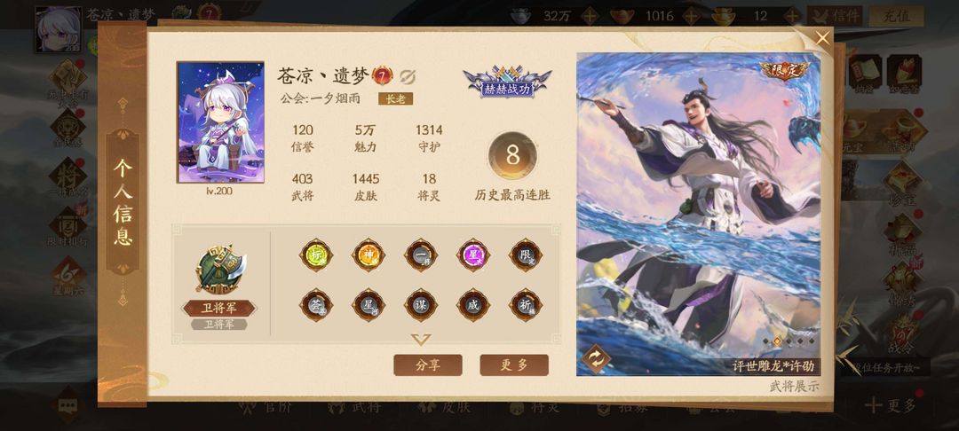 装备描述:一、核心武将 - 神张飞(山河动) - 神华佗 - 神姜维 - 威曹丕 - 威张辽 - 谋司马懿 - 谋郭嘉 二、祈福武将 - 许靖 - 庞凤衣 - 曹金玉 - 曹芳 三、盒子武将 - 诸葛均 - 乐貂蝉传 - 莫琼树特效动 - 乐蔡文姬 - 乐祢衡传 - 薛灵芸限 - 周宣限 - sp甄姬限 - 黄舞蝶限 - 王睿传 - 管宁水墨皮 - 许邵水龙动 - 吕玲绮战场 - 芮姬 - 孙茹限 - teng公主战场 - 清河公主 - 徐荣 - 司马徽 - 鲍三良 - 杜夔 - 张瑶 - 周不疑 - 文钦 - 贾充 - 庞会 - 桓范