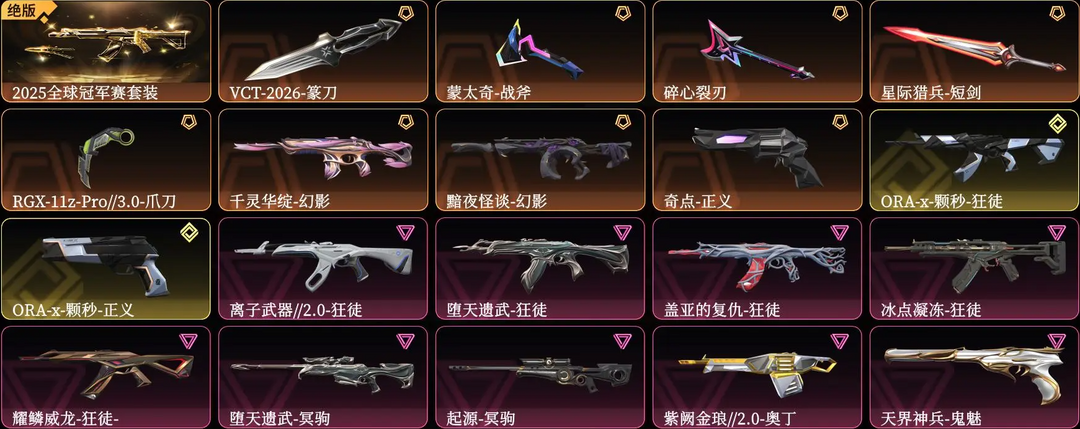 可排5W库存★颗秒★26VCT★25套★千灵★黯夜★冰点★堕天★盖亚★离子★耀鳞★起源★各种炫彩散件