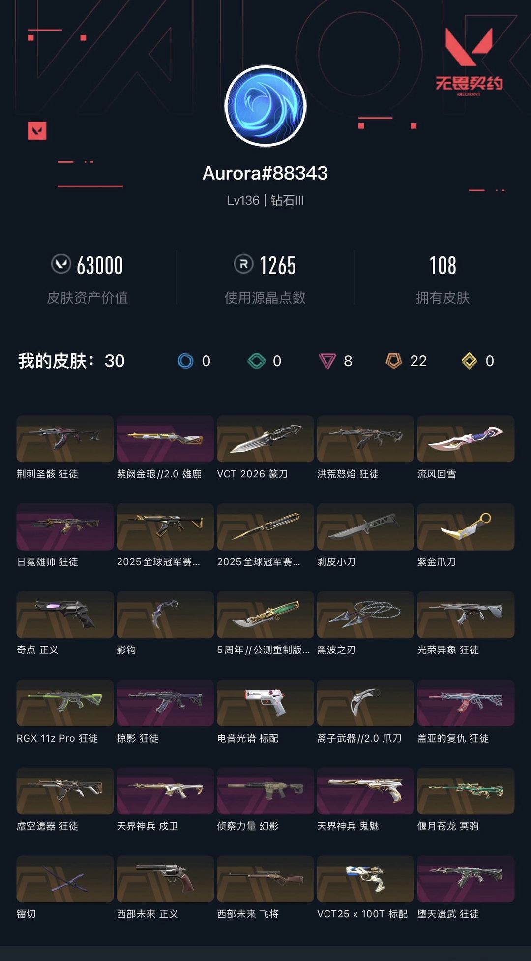 武器皮肤数量:108