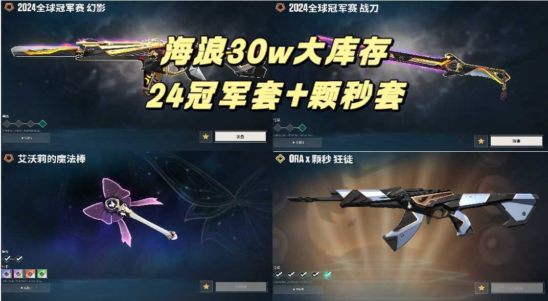 可排位真30w大库存⚡️24冠军套⚡️ORA颗秒套⚡️猫猫刀⚡️猫猫塑水狂徒⚡️VCT标配