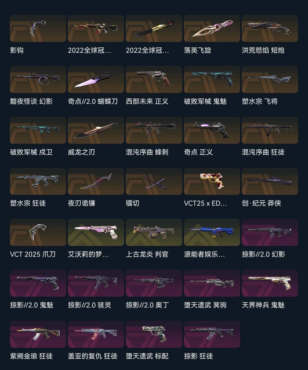 可排杀30+拉黑❤影钩VCT爪落英飞旋夜刃诡镰❤22冠军黯夜怪谈梦之翼电玩❤混沌西部破败盖亚紫金奇点
