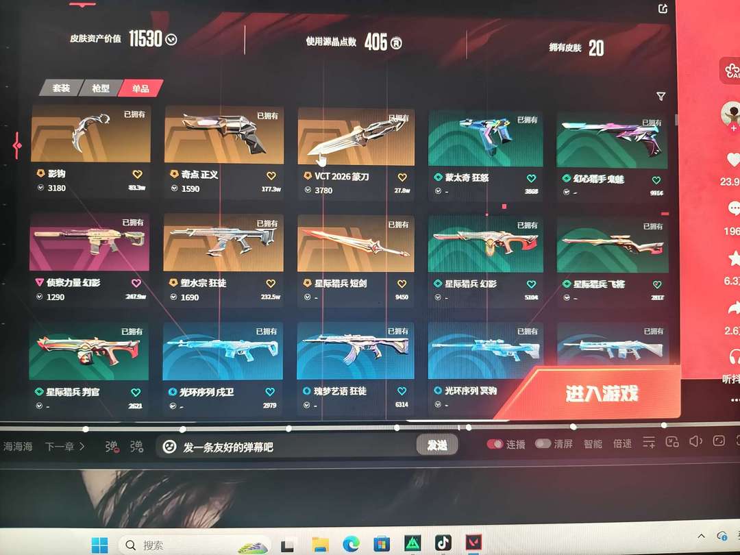 有26vct刀,刀皮影钩,侦查m4,塑水宗ak,奇点正义