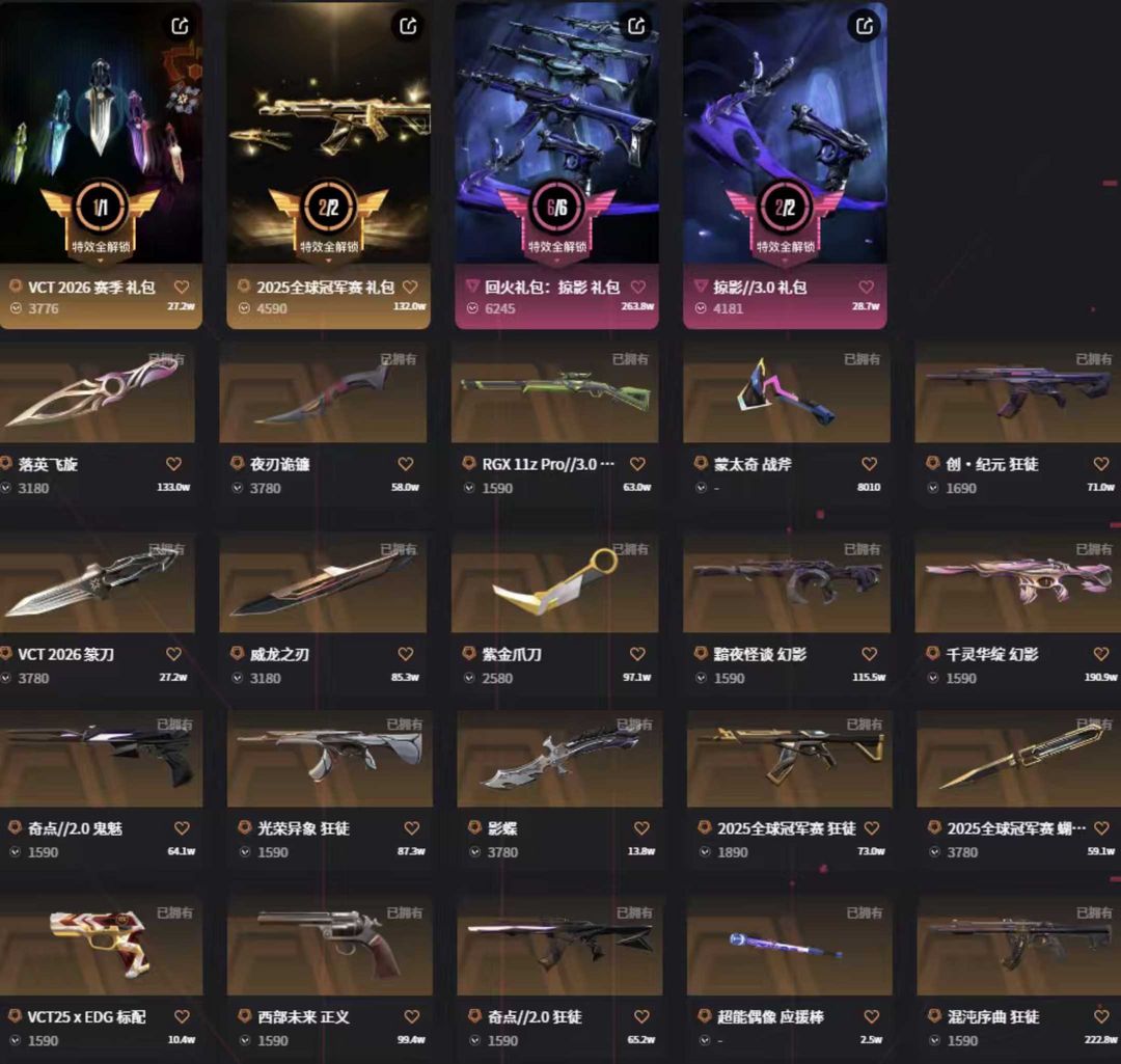 vct篆刀紫金爪影碟✨掠影3.0套25冠军套✨弃王光荣混沌掠影雄狮奇点创纪元ak✨莲花黯夜掠影m4