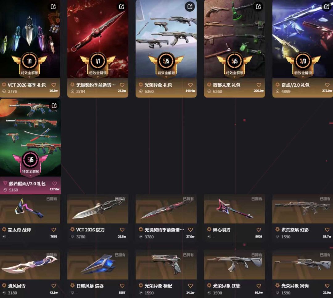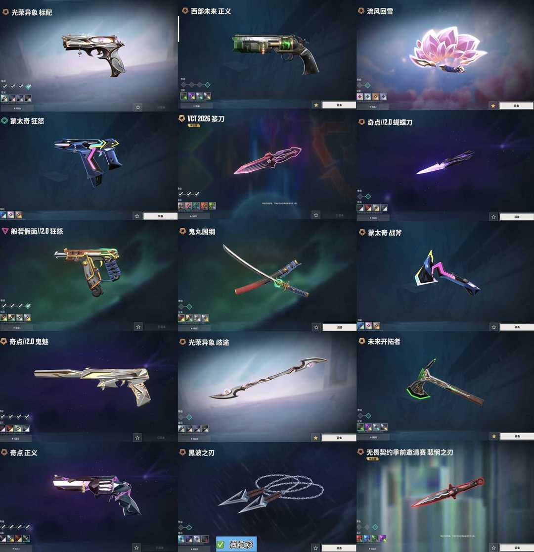 怜悯vct篆刀黑波✨光荣套西部套般若套✨赤焰混沌盖亚离子奇点双城ak✨莲花西部流脓m4