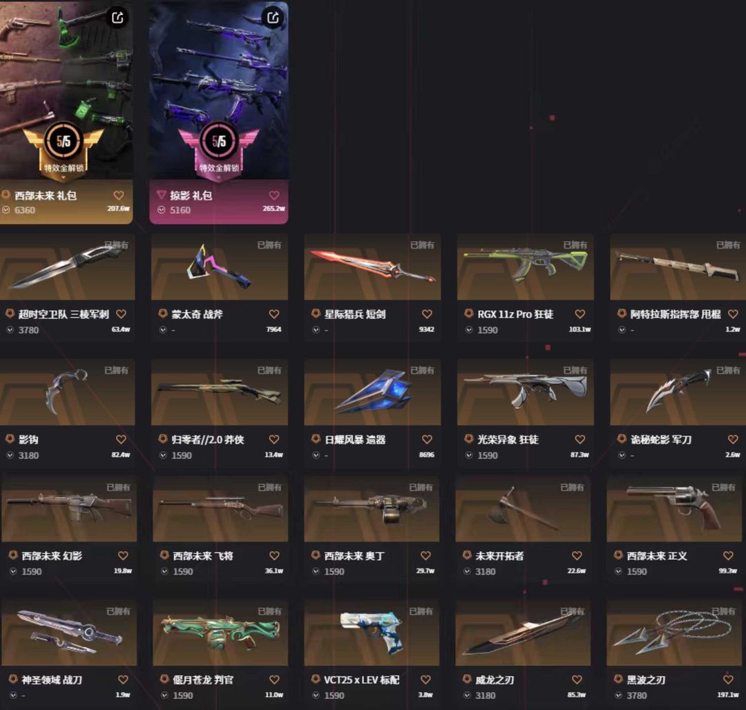 三棱刀黑波刃追猎✨西部套掠影套✨显卡光荣弃王紫金混沌盖亚悟空离子ak✨蛇年侦察神兵m4