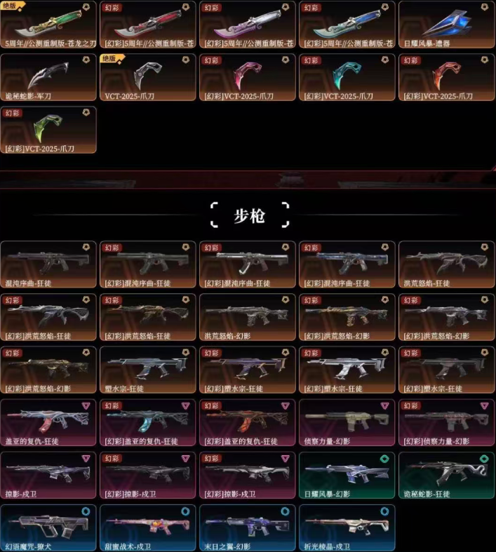 可排位大库存✨多彩✨苍龙25爪刀✨塑水✨混沌✨流脓✨盖亚✨流脓侦察幻影✨弃王大狙✨朋克鬼魅✨掠夺正义