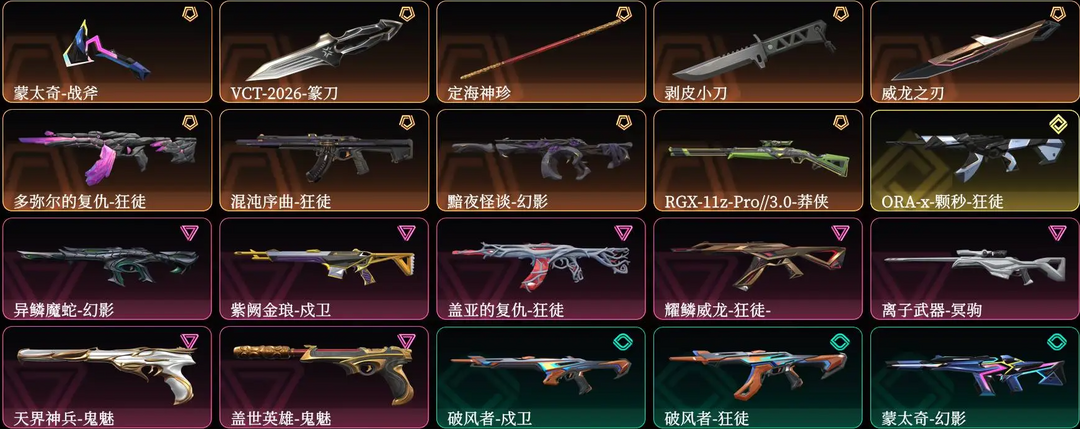可排位大库存☆VCT26☆剥皮小刀☆颗秒☆多弥尔☆混沌☆黯夜☆耀鳞☆异鳞☆盖亚☆RGX☆盖世☆天界