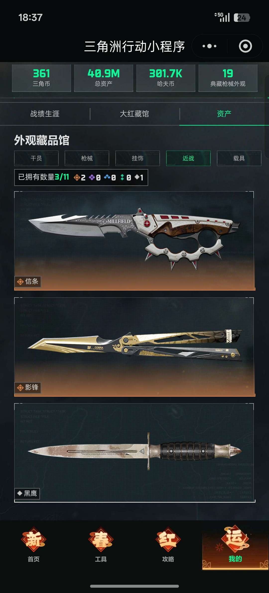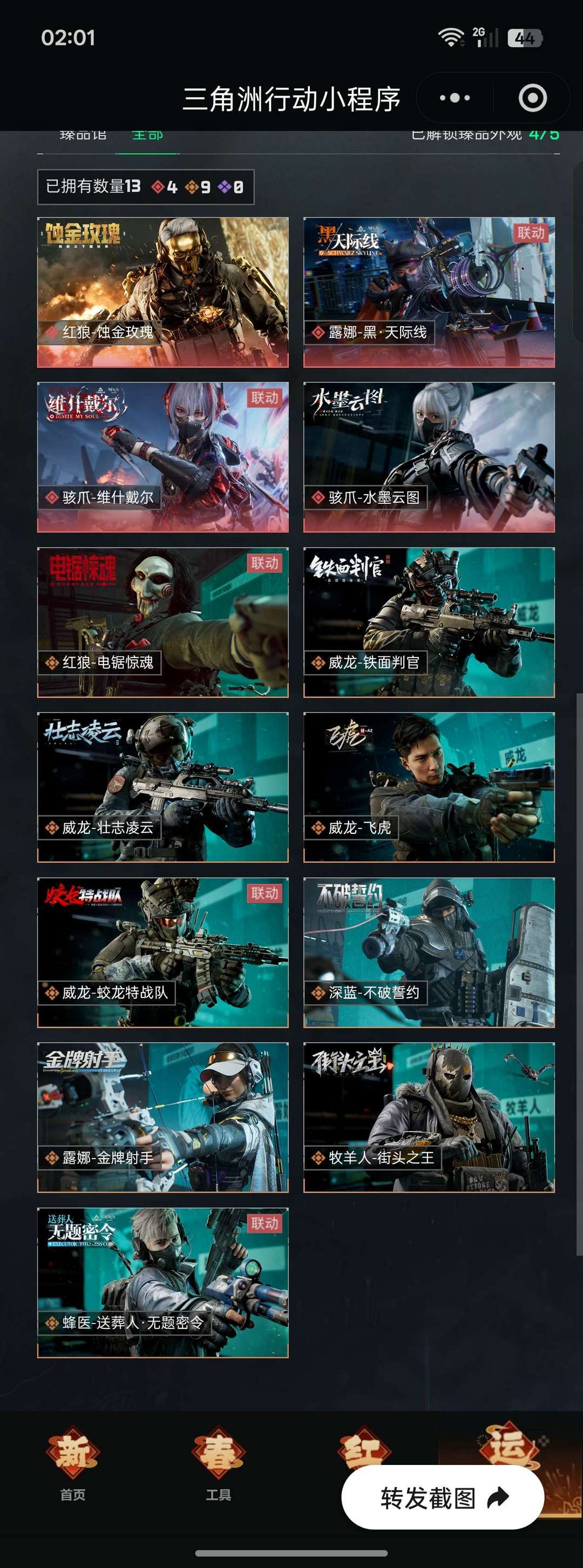 皮肤号 (无币皮肤号)适合大战场玩家,烽火玩家需自己跑刀。四个红皮,威龙全皮,两把刀皮信条和影锋