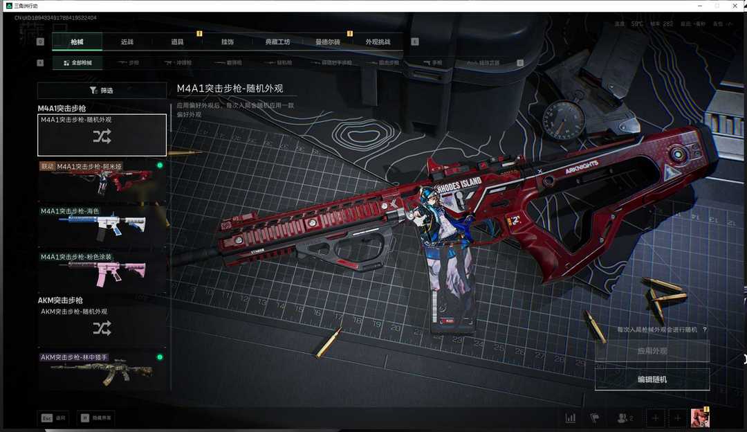 皮肤号 超多优质枪皮爆率超高传说武器皮肤: SMG45冲锋枪-骑士,M4A1突击步枪-阿米娅,