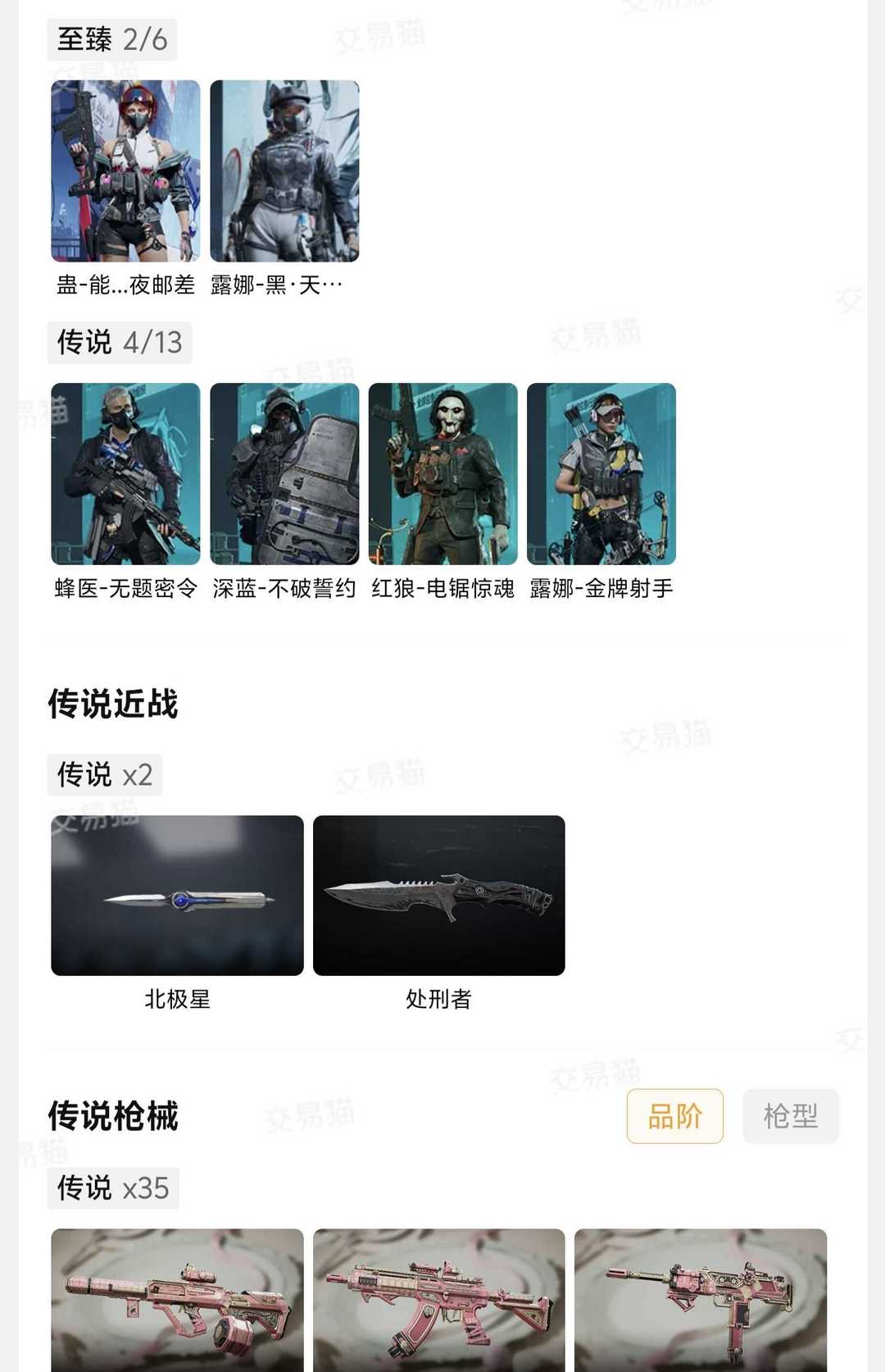 百万哈夫币 【510万币可用】北极星+露娜天际线+午夜邮差+9格保险+35传说枪皮