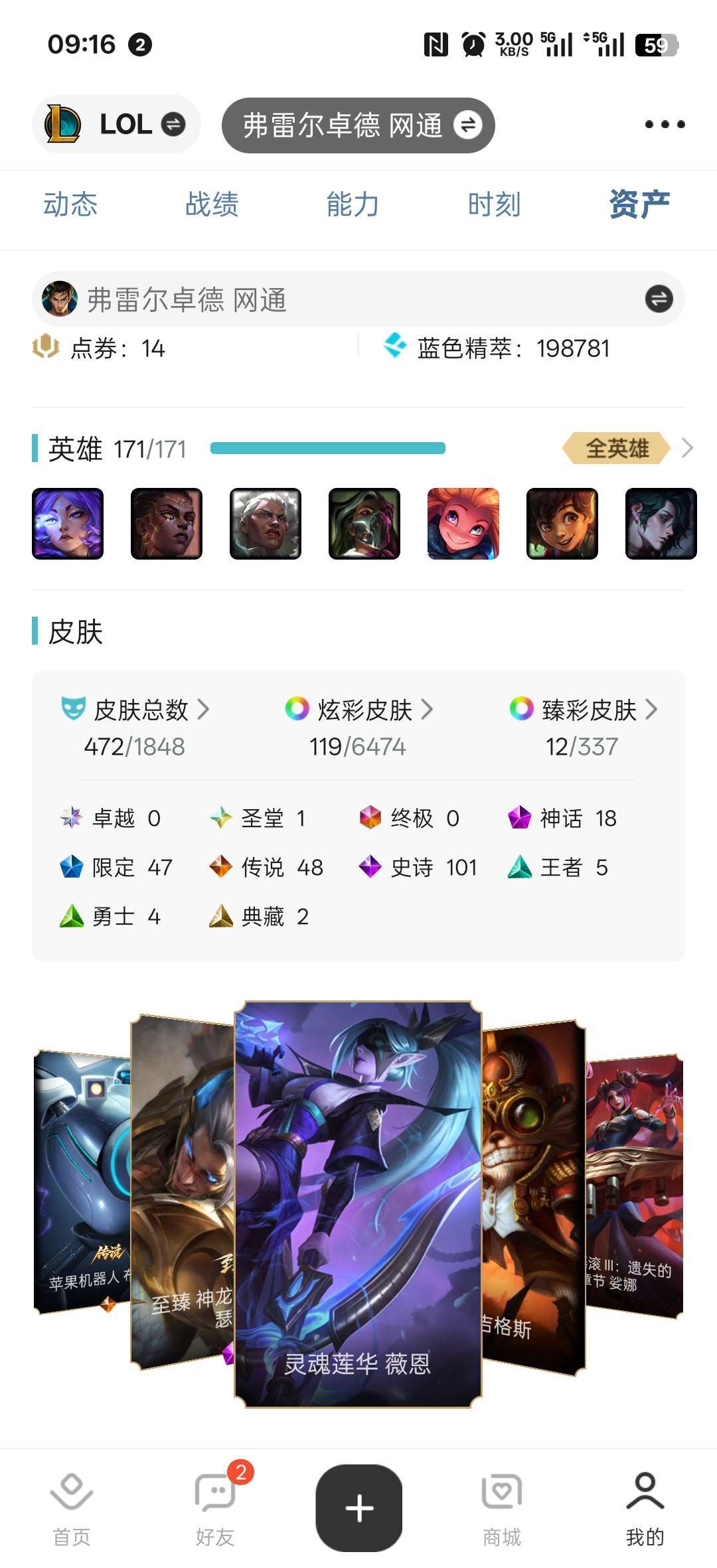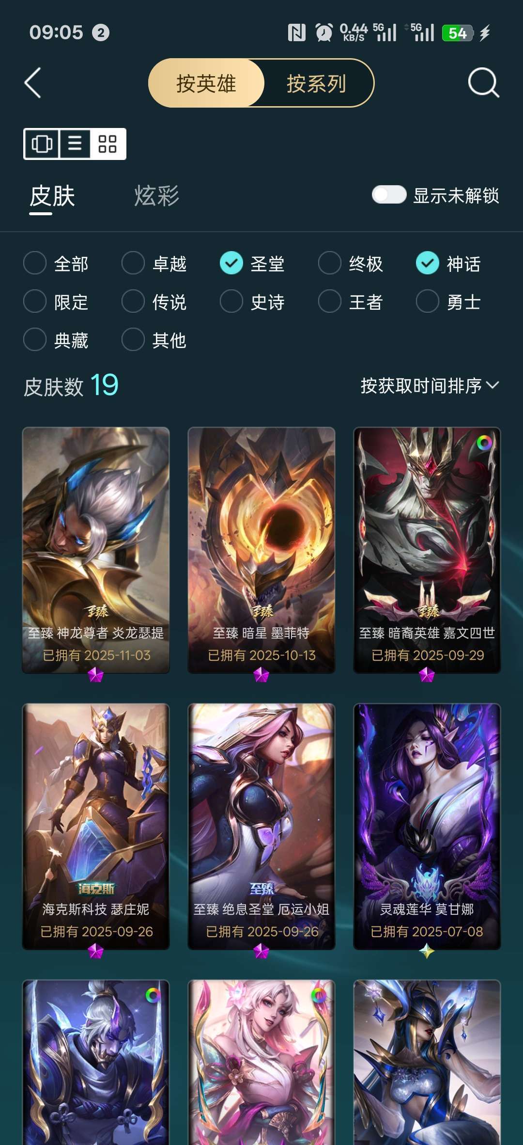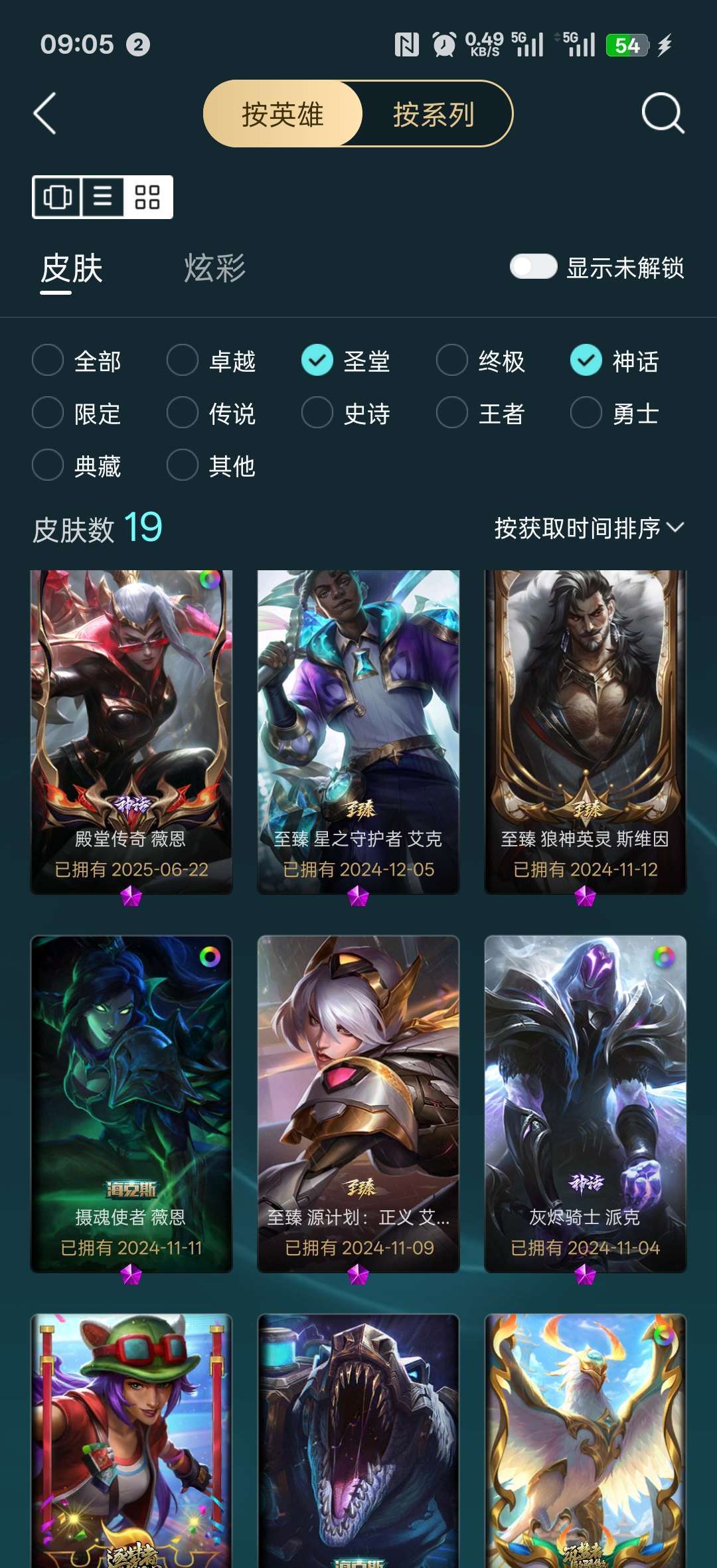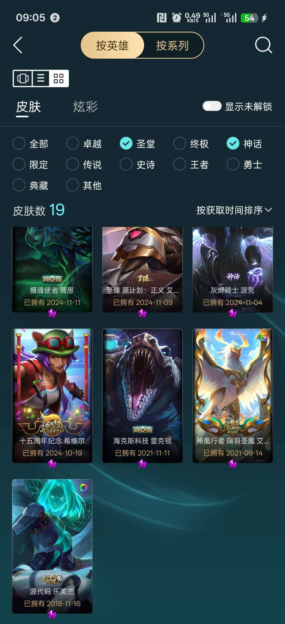 472款皮肤,119炫彩,18款神话皮,47限定,48传说,101史诗,12臻彩,圣堂莫甘娜双形态