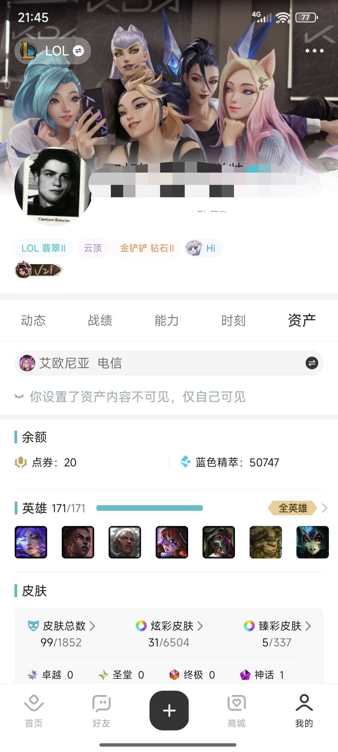工作需要 没时间玩 自玩号求别乱搞 封号 期待相约峡谷 召唤师!