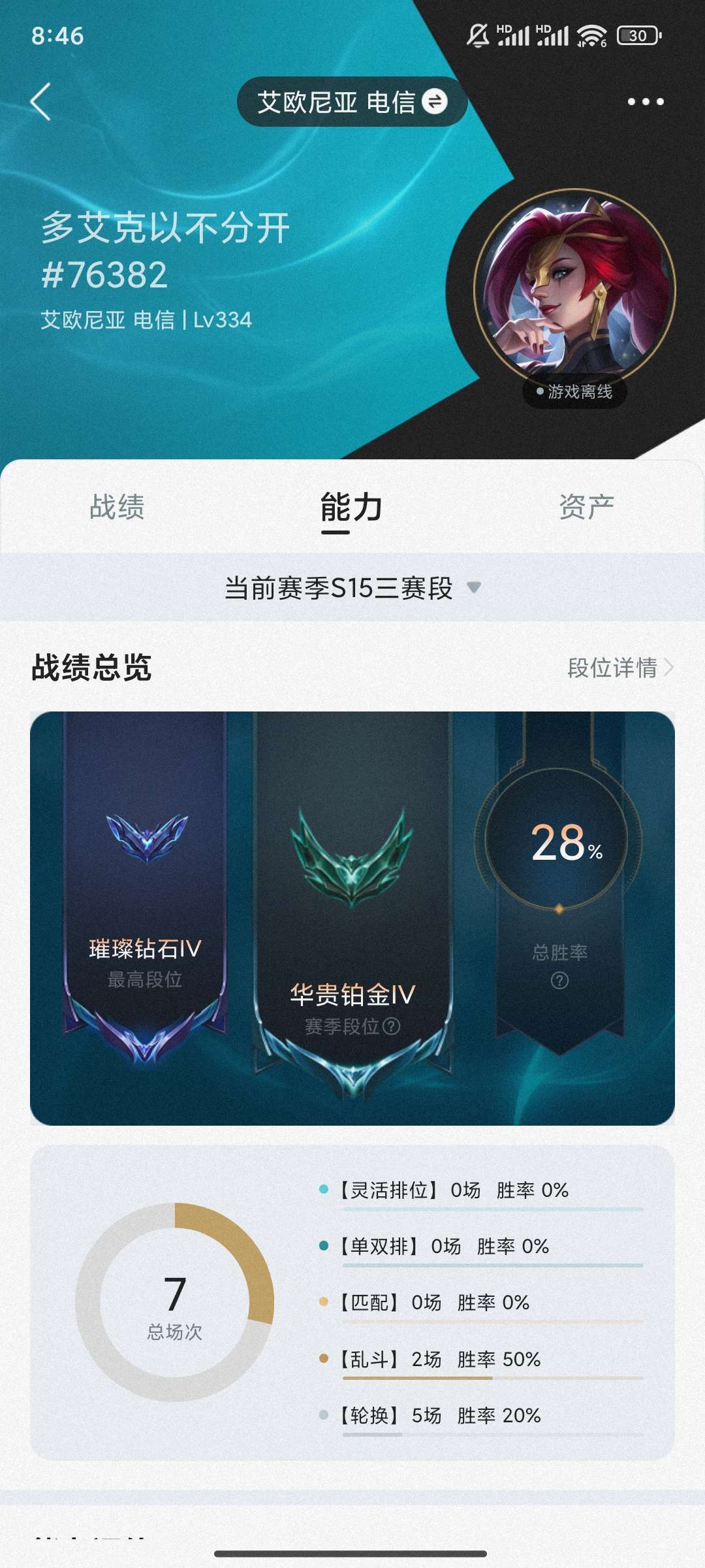 电一艾欧尼亚铂金号最高钻石,可以排位