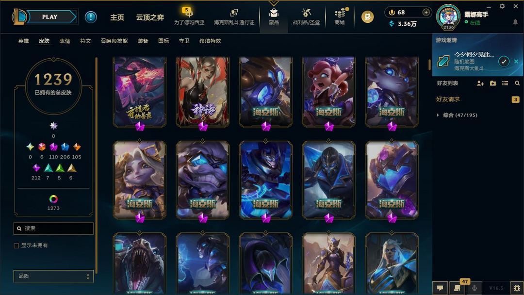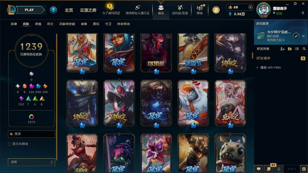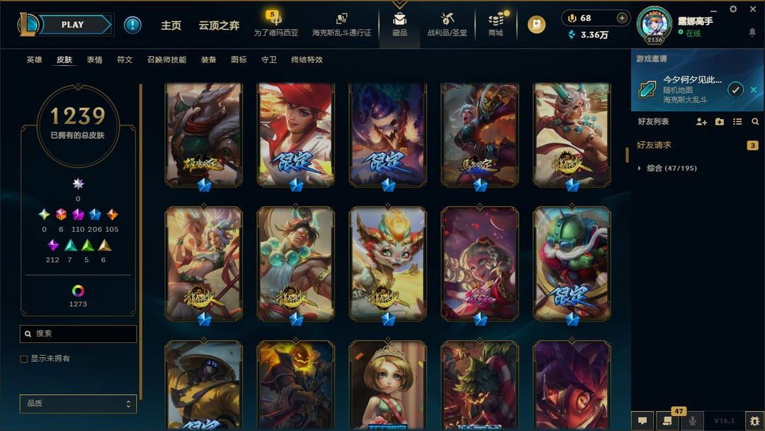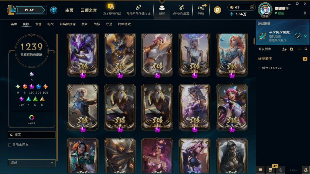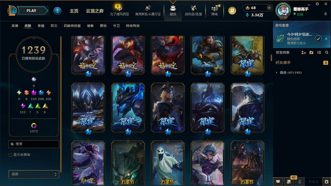 【LOL大王】2600P乄1239原皮乄1273炫彩乄110神话乄206限定乄龙虾乄天龙之子