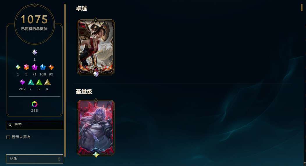 装备描述:王佛耶戈,炽天使眼永恩,创世亚索,堕落神王诺手,堕落盖伦,龙神