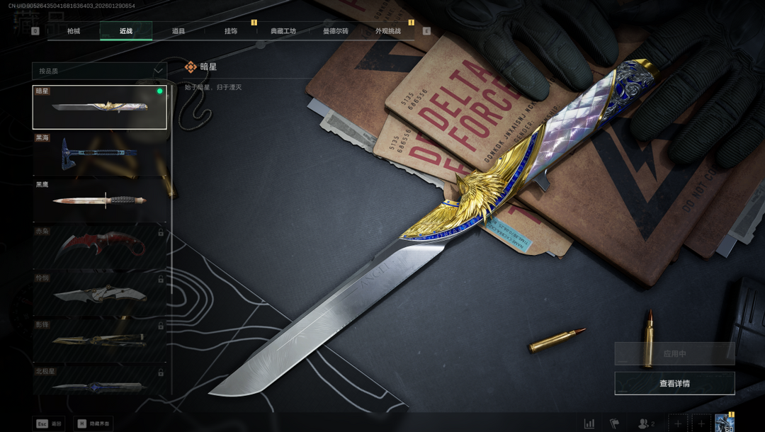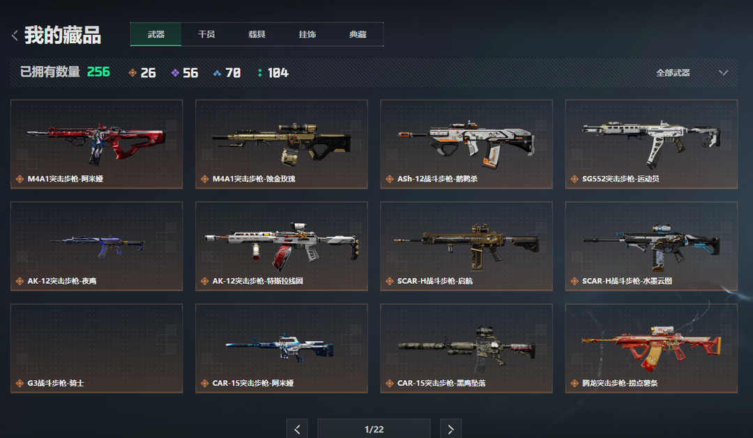 皮肤号 ✅新刀暗星✨AUG气象感应✨极品电玩✨暗星黑海✨午夜邮差✨蚀金玫瑰✨露娜天际线✨满特勤