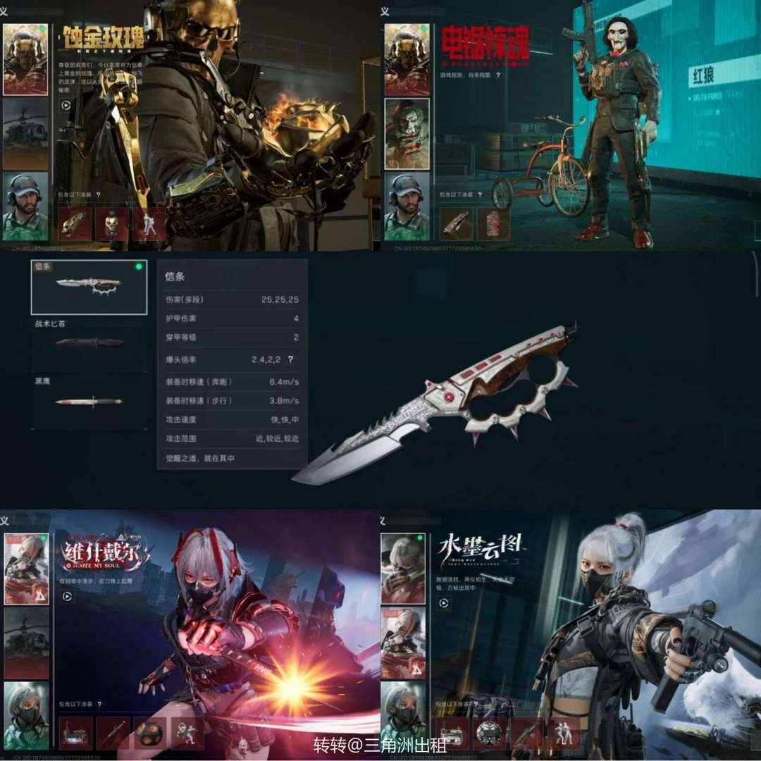 装备描述:5干员1刀蚀金玫瑰,新刀信条,11款传说枪皮