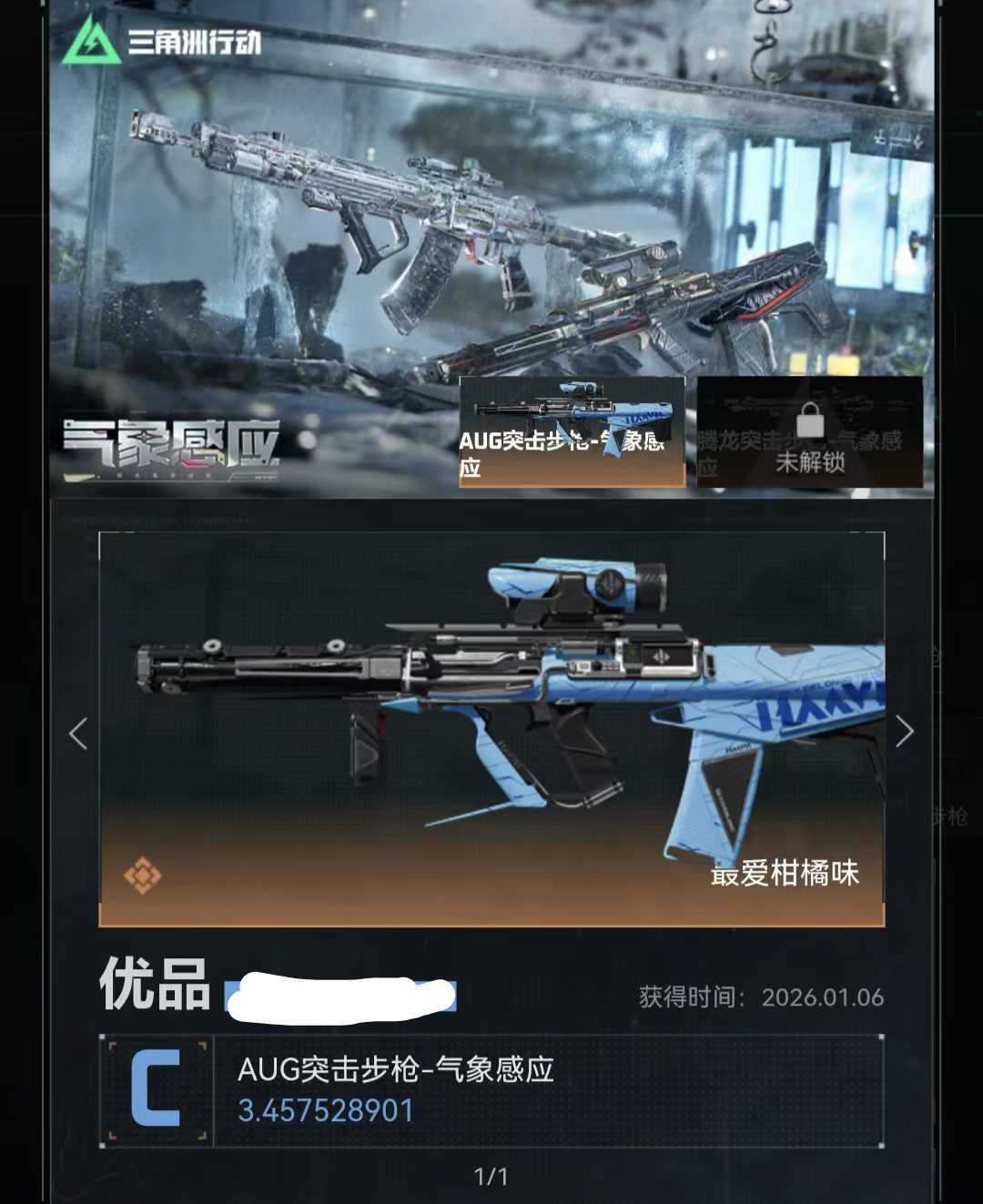 装备描述:禁止开挂毁号!都能找到人!维什戴尔❤露娜天际线❤蚀金玫瑰❤送葬人❤夜鹰❤红狼电锯❤街头之王❤深蓝❤露娜金牌射手❤️AUG气象感应(优品C)近战:信条/影锋/黑海仓库9训练6靶场7潜水2