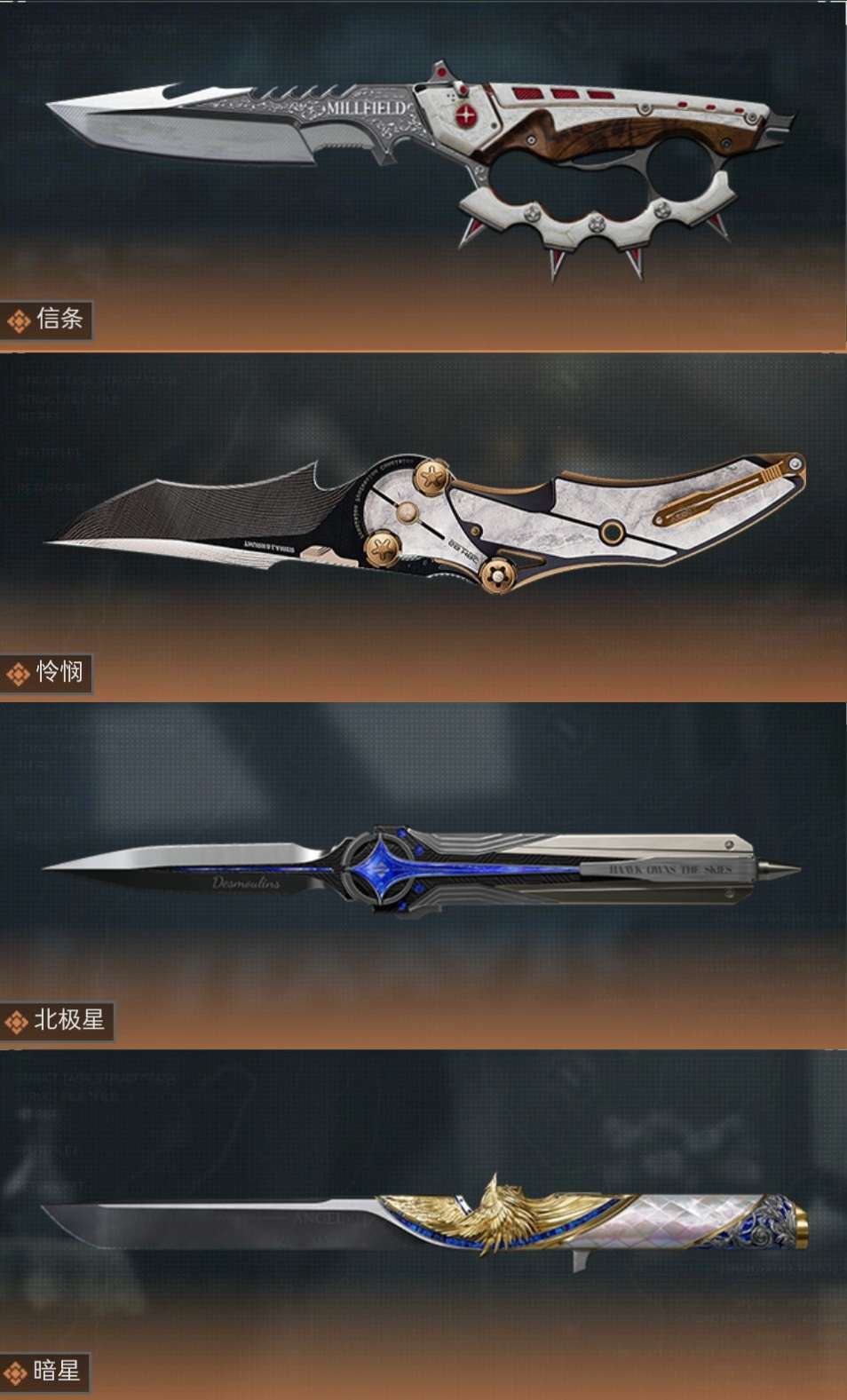 皮肤号 ⚡多红皮⚡多刀皮【冻结点协助】✨凌霄戍卫⚡天际线⚡水墨云图⚡维什戴尔✨怜悯⚡北极星✨信条✨影锋