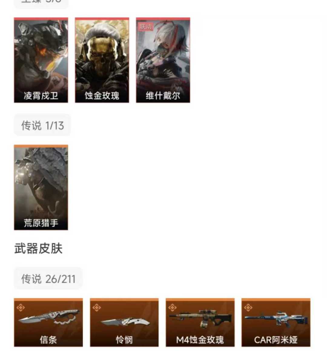 皮肤号 怜悯信条凌霄戍卫,蚀金玫瑰,维什戴尔,26款传说枪皮