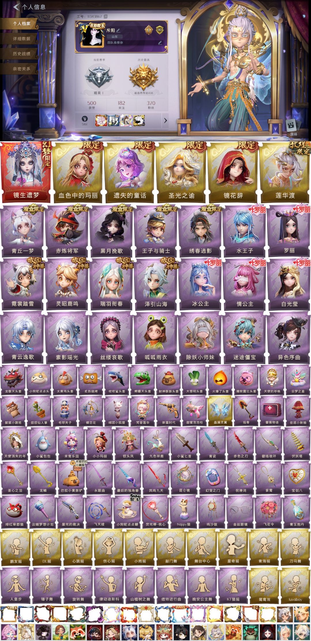 装备描述:一单一改密,老板喜欢请下单!!! 全图鉴满内测✨有兔宝✨莲花渡满抽✨露比全套✨镜生遗梦✨1幻梦5耀世【满魔盒+满金皮+满紫皮+满氪条】