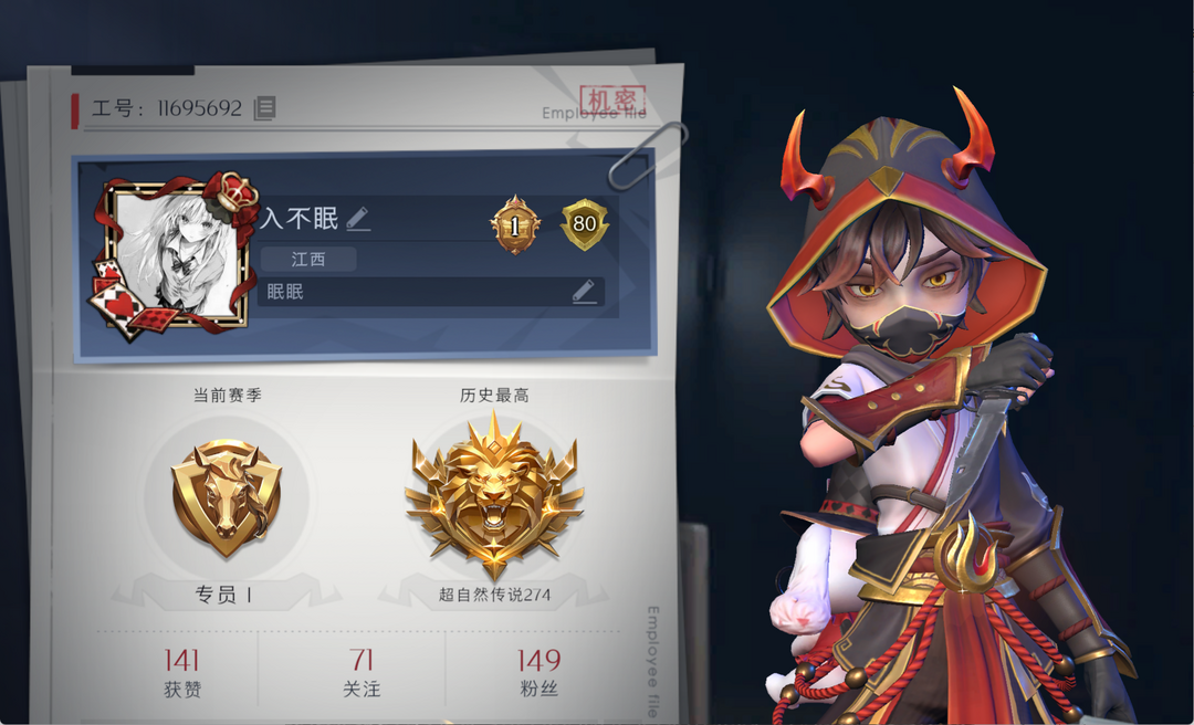 角色名:入不眠