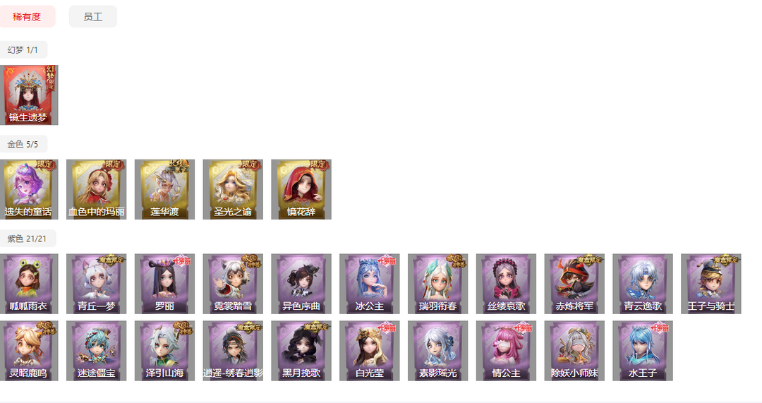 装备描述:有兔宝3金16紫叶罗丽已补【全图鉴】✨满氪条✨✨全耀世全魔盒全联动全刀皮✨除舞蹈全清