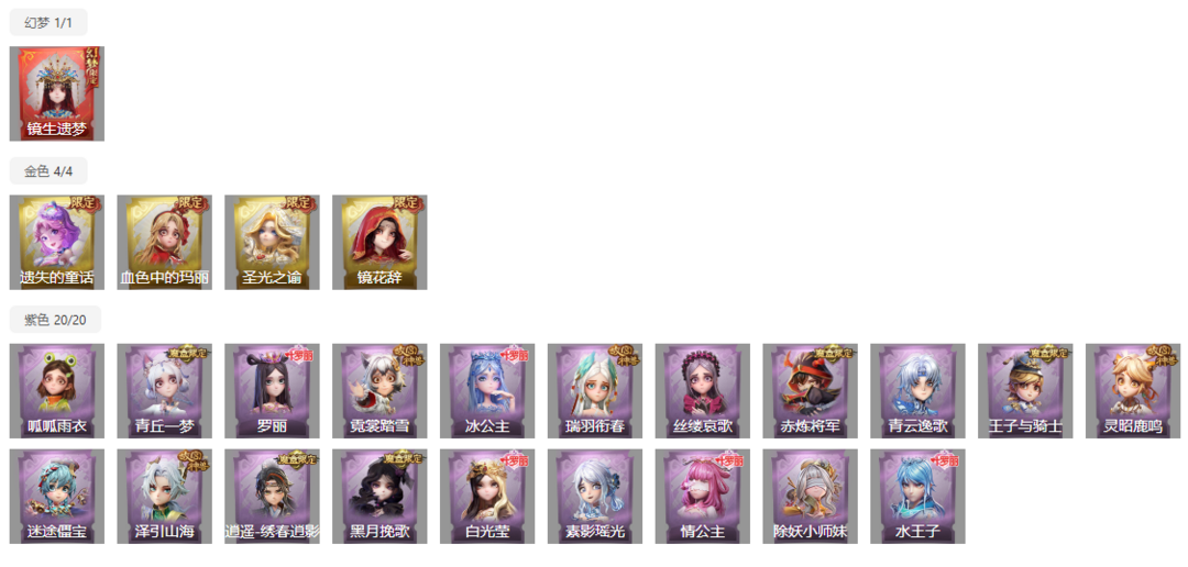 限制: 租号20次及以上 |装备描述:【幻梦】镜生遗梦 【金皮】圣光之谕、血色中的玛丽、遗失的童话、镜花辞、莲华渡 【紫皮】异色序曲、迷途僵宝、除妖小师妹、赤炼将军、黑月挽歌、青丘一梦、王子与骑士、情公主、水王子、冰公主、罗丽、白光莹、泽引山海、灵昭鹿鸣、瑞羽衔春、霓裳踏雪、青云逸歌、素影瑶光、丝缕哀歌、绣春逍影、呱呱雨衣、 【道具】赞萌露比水枪、happy猫、碧络琅环、焰骨、龙鳞、幻宠之门、永眠曲、昆仑镜、飞花令、凤鸣九天、祝祷词、金丝眼镜、伏妖塔、花落精绝、圣心之泪、赤色之刃、青玉抱丹、小狗蛇点点鞭、绯红柴郡猫、星光的裁决、云端梦想计划、卡皮巴拉小黄豚铲、青瓷、宝剑八、最后的独角兽、小鲨匕首、桃心、新星时代、紫霄、甜蜜泡泡枪、飞天绫、卡皮巴拉小黄豚铲、晶澜灵翼 【动作】萨克斯律动舞、汽车摇、奶龙舞、奶龙呲牙舞、阿帕次舞、呲牙舞、九万字舞、老鼠舞、胜利之舞、来财舞、刀马舞、姫芽摇、鹏友摇、DL摇、心跳摇、伤心摇、小雨摇、舞台中心、星奇摇、敲门舞、青海摇、鸳鸯戏、七仔摇