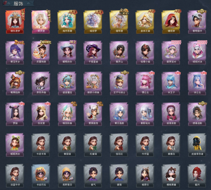 ♥兔宝♥1幻梦1星耀5耀世金26紫♥晶澜灵翼♥镜生遗梦♥炽天使♥莲花度♥圣光♥海月♥镜花辞♥瑶台梦♥