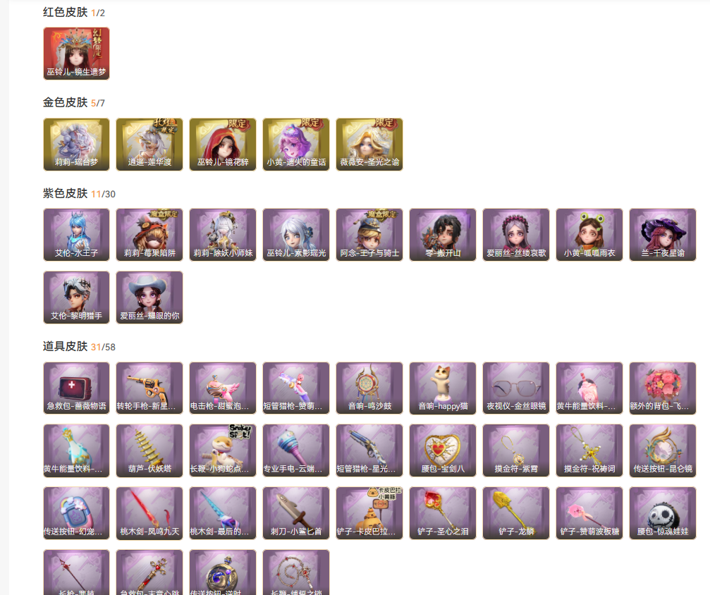 1红5金11紫31道具皮瑶台梦镜生遗梦镜花辞莲花渡圣光之谕遗失的童话搬开口莓果陷阱除妖小师妹千叶