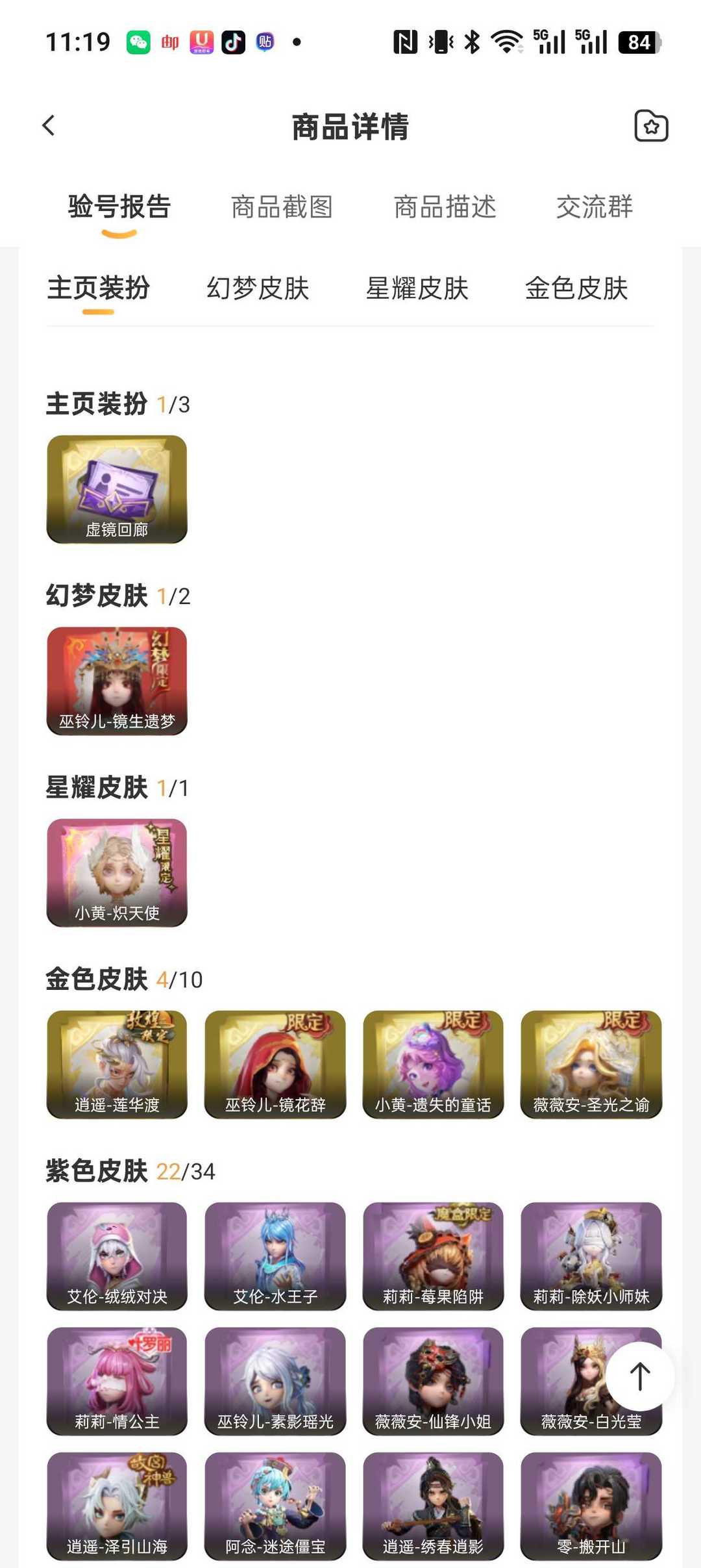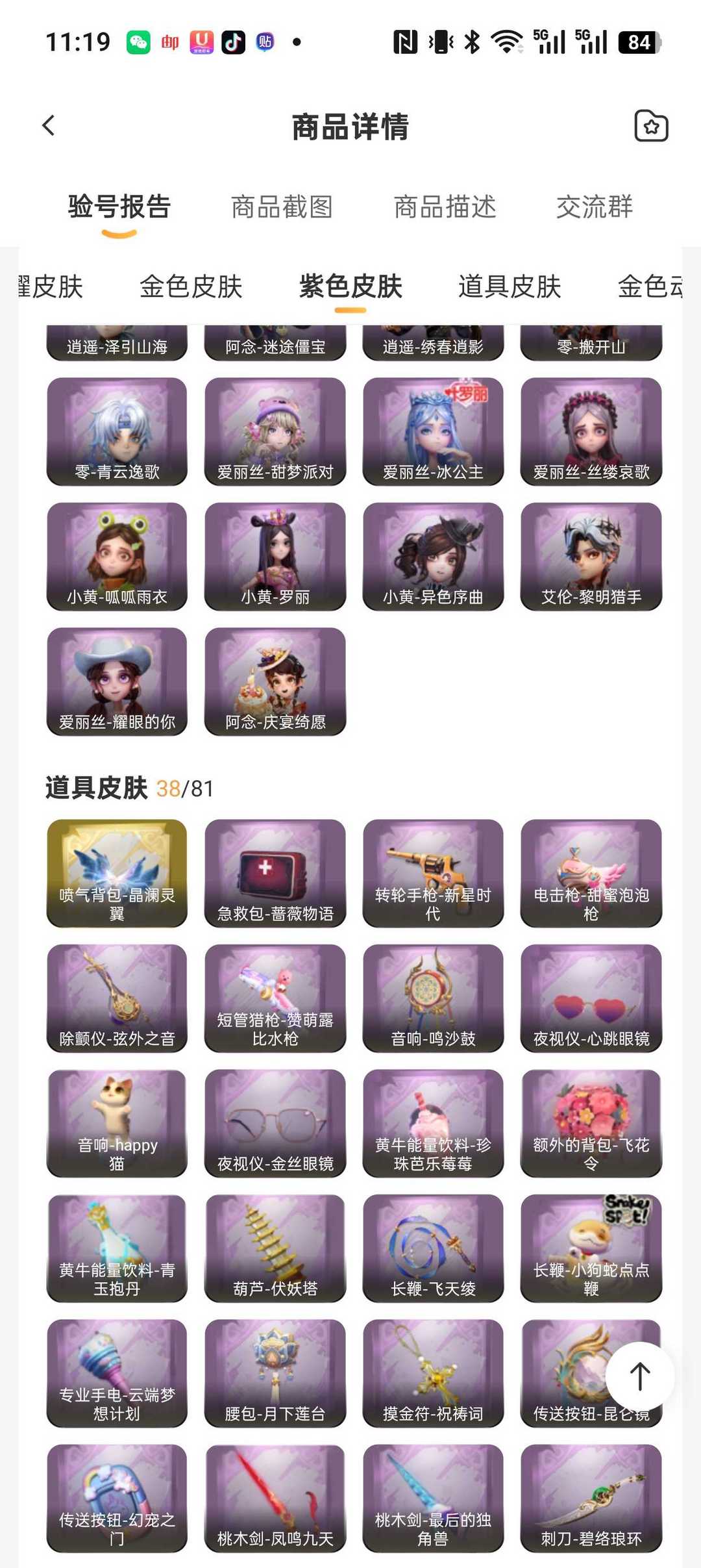 1粉1红4金22紫38道具♥炽天使♥幻梦镜生遗梦♥遗失的童话♥圣光之谕♥莲华渡♥莓果陷阱♥晶澜灵翼