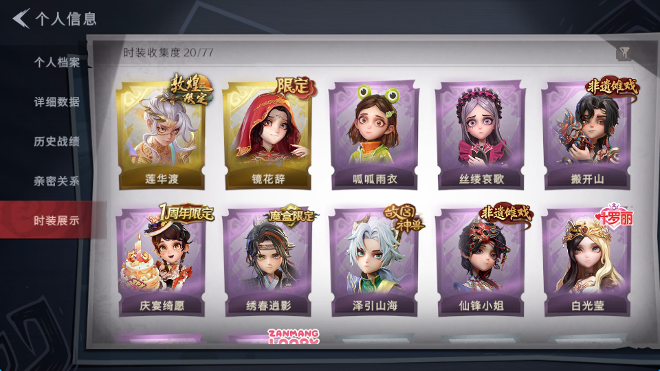 装备描述:皮肤:巫铃儿-镜花辞,逍遥-莲华渡,爱丽丝-丝缕哀歌,逍遥-绣春逍影,薇薇安-白光莹,零-搬开山,阿念-庆宴绮愿,艾伦-绒绒对决,逍遥-泽引山海,小黄-呱呱雨衣,薇薇安-仙锋小姐,莉莉-除妖小师妹;道具:腰包-月下莲台,传送按钮-昆仑镜,额外的背包-飞花令,刺刀-碧络琅环,电击枪-甜蜜泡泡枪,短管猎枪-赞萌露比水枪,转轮手枪-新星时代,铲子-卡皮巴拉小黄豚铲,摸金符-紫霄,长鞭-飞天绫,专业手电-云端梦想计划,刺刀-小鲨匕首,葫芦-伏妖塔,音响-happy猫,铲子-龙鳞,黄牛能量饮料-珍珠芭乐莓莓,闪光弹-金戈玄铜,急救包-蔷薇物语,桃木剑-最后的独角兽,音响-鸣沙鼓,伞-伞;美妆:美妆-暗夜小恶魔;饰品:头饰-萨卡班甲鱼头套,头饰-精致露比头套,头饰-呆滞头套,头饰-哈士奇头套,头饰-面具马头套,头饰-头饰-卑微头套,头饰-小狗蛇点点头套,头饰-嘻嘻头套,头饰-大葱明头套,头饰-滑稽头套,头饰-火爆了头套,头饰-烈焰红唇头套,头饰-樱桃奶油布丁,头饰-炙热烧烤,头饰-惊魂南瓜头套,头饰-鱼头怪头套,头饰-像素朋克墨镜,头饰-后室幸存者头套,挂饰-九色祥鹿,挂饰-糖果守卫,挂