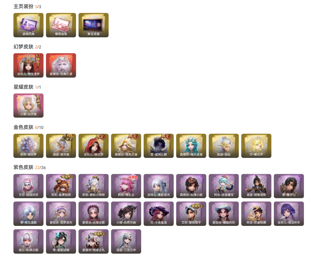 2红1星耀8金25紫/镜生遗梦沧海之遗炽天使剑仙莲华渡圣光之谕渡鸦公爵瑶台梦镜花辞海月息潮遗失的童