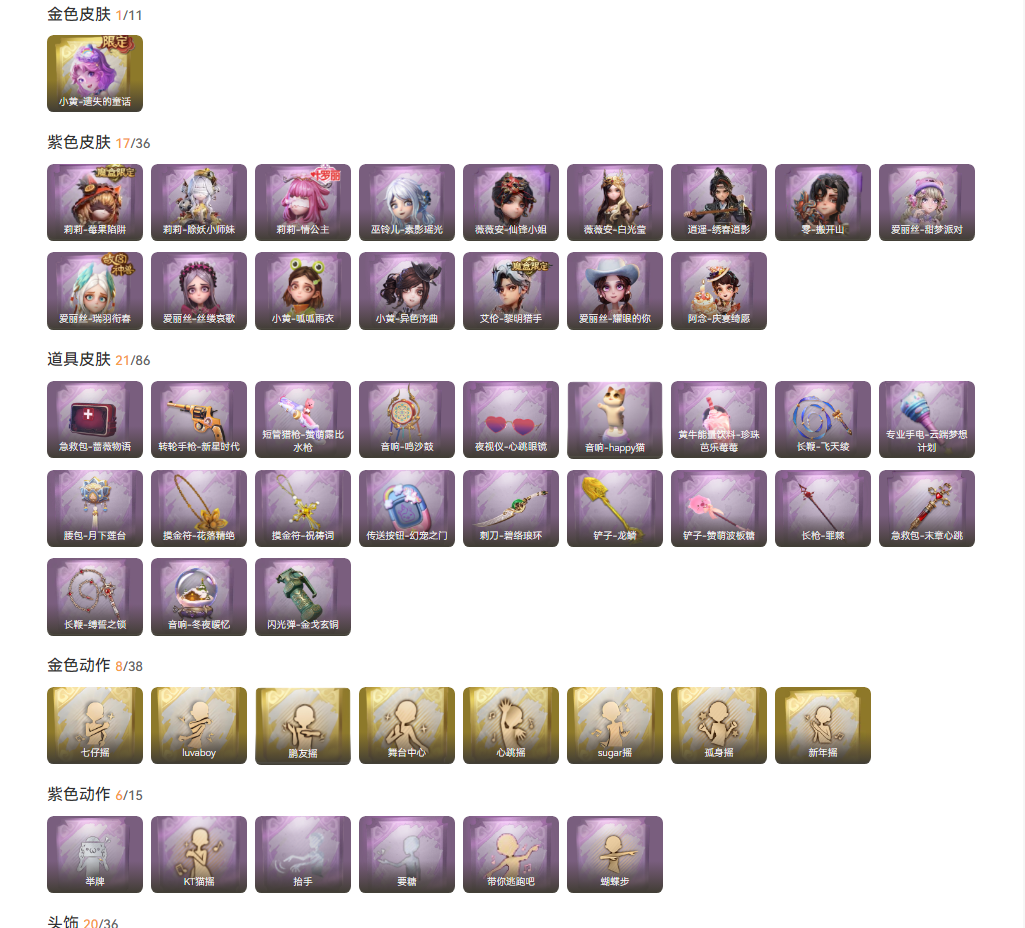 装备描述:17紫1金非遗套装遗失的童话白光莹薇薇安逍遥秀春搬开山先锋小姐美妆小恶魔