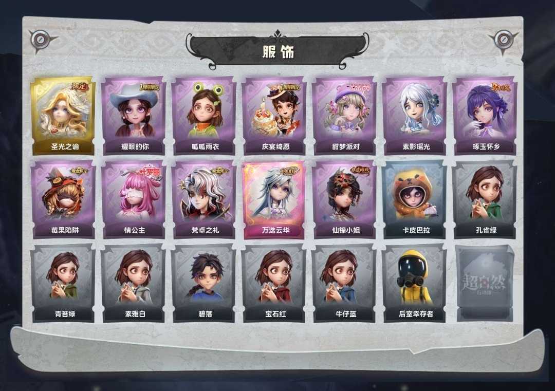 1金♉11紫♉圣光之谕♋甜梦派对♋素影瑶光⛎琢玉怀乡⛎莓果陷阱♑情公主♑仙锋小姐♉梵卓之礼♉万迭云华