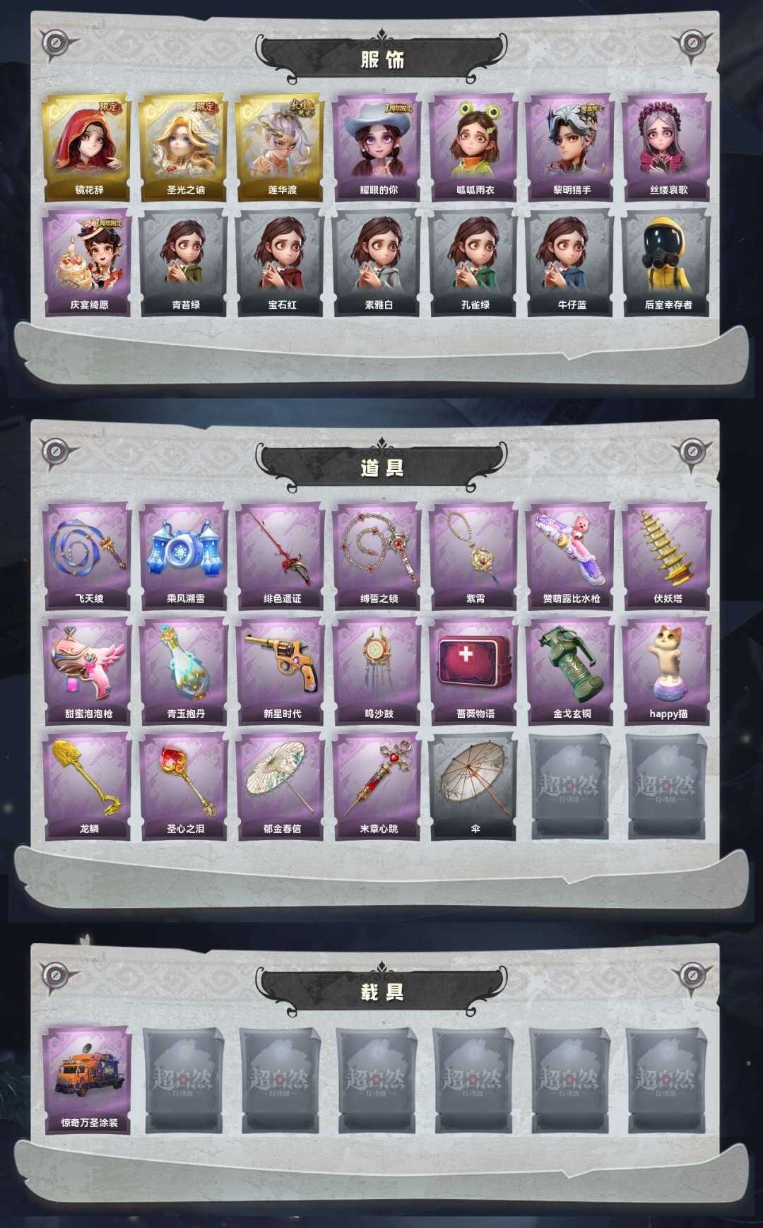 3金♉5紫♉镜花辞♋圣光之谕♋莲华渡⛎黎明猎手⛎赞萌露比水枪♑惊奇万圣涂装♑飞天绫♉紫霄♉绯色遗症
