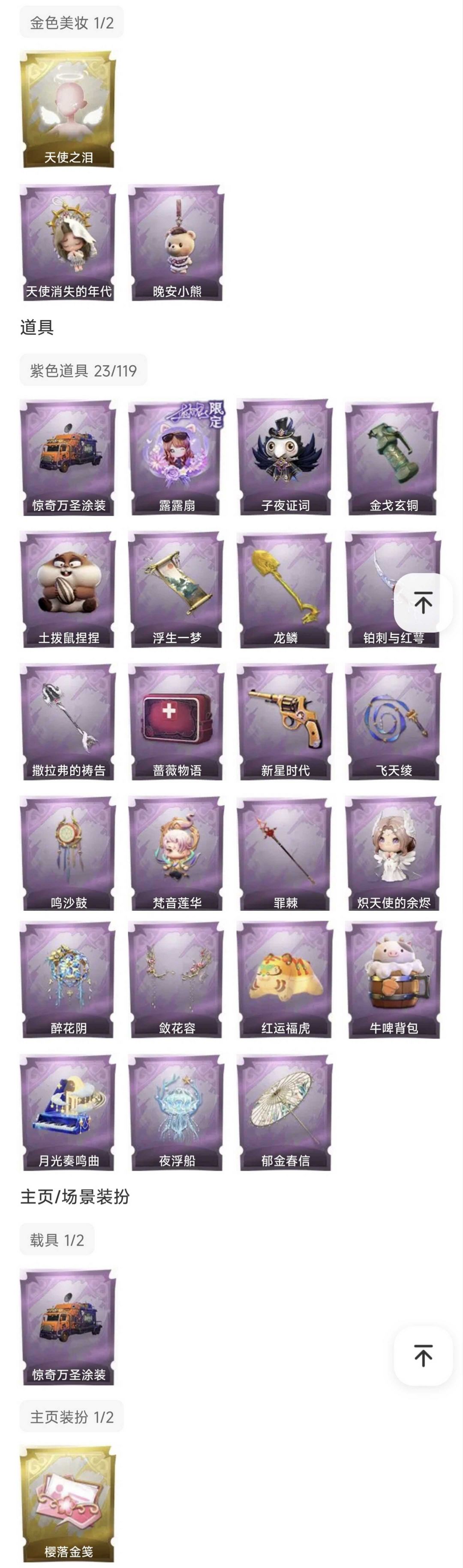 1红4金7紫22道具✨剑仙✨莲华渡✨瑶台梦✨炽天使✨遗失的童话✨万圣车皮✨露露扇 美妆