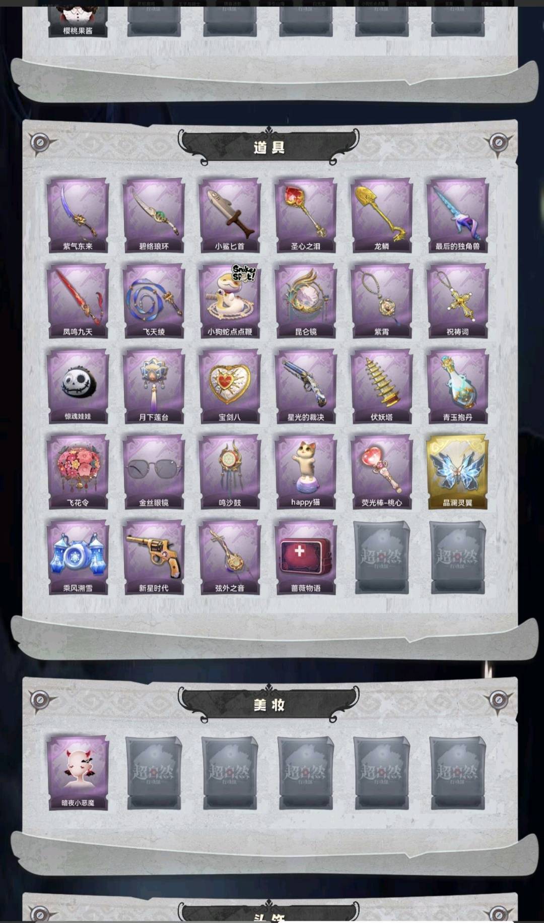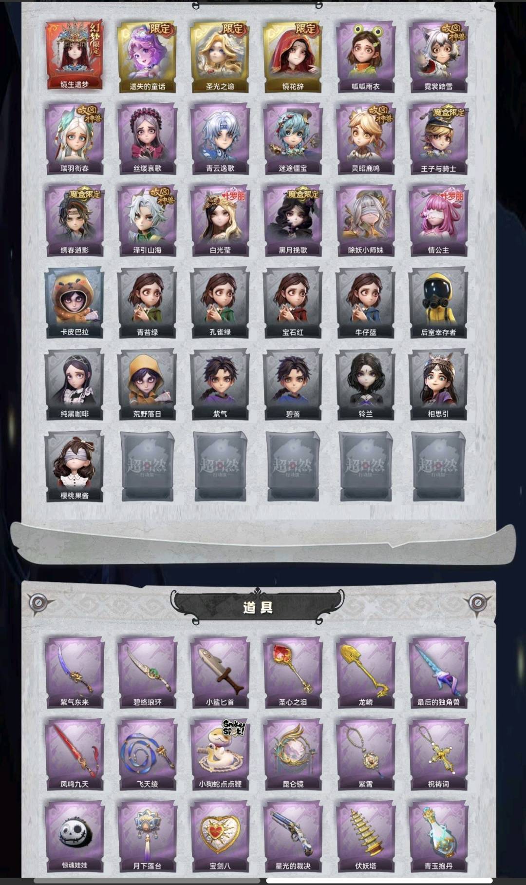 装备描述:幻梦1;金皮3;紫皮14;道具28;累充3965元;皮肤:巫铃儿-镜生遗梦,小黄-遗失的童话,薇薇安-圣光之谕,巫铃儿-镜花辞,小黄-呱呱雨衣,小黄-霓裳踏雪,爱丽丝-瑞羽衔春,爱丽丝-丝缕哀歌,零-青云逸歌,阿念-迷途僵宝,阿念-灵昭鹿鸣,阿念-王子与骑士,逍遥-绣春逍影,逍遥-泽引山海,薇薇安-白光莹,薇薇安-黑月挽歌,莉莉-除妖小师妹,莉莉-情公主;道具:刺刀-紫气东来,刺刀-碧络琅环,刺刀-小鲨匕首,铲子-圣心之泪,铲子-龙鳞,桃木剑-最后的独角兽,桃木剑-凤鸣九天,长鞭-飞天绫,长鞭-小狗蛇点点鞭,传送按钮-昆仑镜,摸金符-紫霄,摸金符-祝祷词,腰包-惊魂娃娃,腰包-月下莲台,腰包-宝剑八,短管猎枪-星光的裁决,葫芦-伏妖塔,黄牛能量饮料-青玉抱丹,额外的背包-飞花令,夜视仪-金丝眼镜,音响-鸣沙鼓,音响-happy猫,荧光棒-桃心-荧光棒-桃心,喷气背包-晶澜灵翼,喷气背包-乘风溯雪,转轮手枪-新星时代,除颤仪-弦外之音,急救包-蔷薇物语;美妆:美妆-暗夜小恶魔;饰品:头饰-惊魂南瓜头套,头饰-精致露比头套,头饰-火爆了头套,头饰-大葱明头套,头饰-炙热烧烤,头饰-小狗蛇点