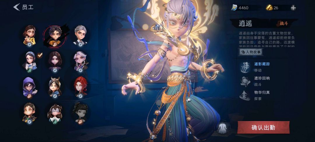 装备描述:金皮2;紫皮4;道具皮8;皮肤:逍遥-莲华渡,巫铃儿-镜花辞,小黄-呱呱雨衣,莉莉-情公主,爱丽丝-丝缕哀歌,爱丽丝-冰公主;道具:铲子-卡皮巴拉小黄豚铲,荧光棒-桃心-荧光棒-桃心,额外的背包-飞花令,转轮手枪-新星时代,腰包-惊魂娃娃,急救包-蔷薇物语,音响-鸣沙鼓,电击枪-甜蜜泡泡枪;饰品:头饰-呆滞头套,头饰-小财神豚豚头套,头饰-滑稽头套,头饰-火爆了头套,头饰-哈士奇头套,头饰-嘻嘻头套,头饰-卑微头套,头饰-炙热烧烤,头饰-鱼头怪头套,头饰-惊魂南瓜头套,头饰-烈焰红唇头套,头饰-面具马头套,头饰-萨卡班甲鱼头套,头饰-鳄霸天头套,头饰-像素朋克墨镜,头饰-后室幸存者头套,挂饰-小鲨包包,挂饰-未竟乐园,挂饰-钗头凤,背饰-蝶恋花;动作:动作-舞台中心,动作-luvaboy,动作-心跳摇,动作-刀马舞,动作-举牌,动作-抬手,动作-要糖;工牌背景:工牌背景-冰晶宫,工牌背景-佛系小豚,工牌背景-蓝海奇遇,工牌背景-情语塔;工牌动作:工牌动作-净禅,工牌动作-虔诚之姿,工牌动作-元气剪刀手;员工:爱德华,阿念,艾伦,巫铃儿,莉莉,逍遥,爱丽丝,兰,零,小黄,薇薇安累充596