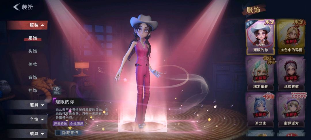 装备描述:金皮1;紫皮1;道具皮4;皮肤:巫铃儿-镜花辞,小黄-呱呱雨衣;道具:电击枪-甜蜜泡泡枪,铲子-圣心之泪,急救包-蔷薇物语,音响-鸣沙鼓;饰品:头饰-鱼头怪头套,头饰-烈焰红唇头套,头饰-大葱明头套,头饰-雪墩墩头套,头饰-火爆了头套,头饰-萨卡班甲鱼头套,头饰-呆滞头套,头饰-卑微头套,头饰-滑稽头套,头饰-面具马头套,头饰-嘻嘻头套,头饰-惊魂南瓜头套,头饰-哈士奇头套,头饰-樱桃奶油布丁,头饰-像素朋克墨镜,头饰-后室幸存者头套,挂饰-天使消失的年代;动作:动作-鹏友摇,动作-舞台中心,动作-luvaboy,动作-抬手,动作-举牌,动作-要糖;工牌背景:工牌背景-鸢尾花,工牌背景-复活的肖像,工牌背景-佛系小豚;工牌动作:工牌动作-净禅;员工:薇薇安,阿念,巫铃儿,兰,小满,小黄,艾伦,莉莉,零,逍遥,爱丽丝;累充102元