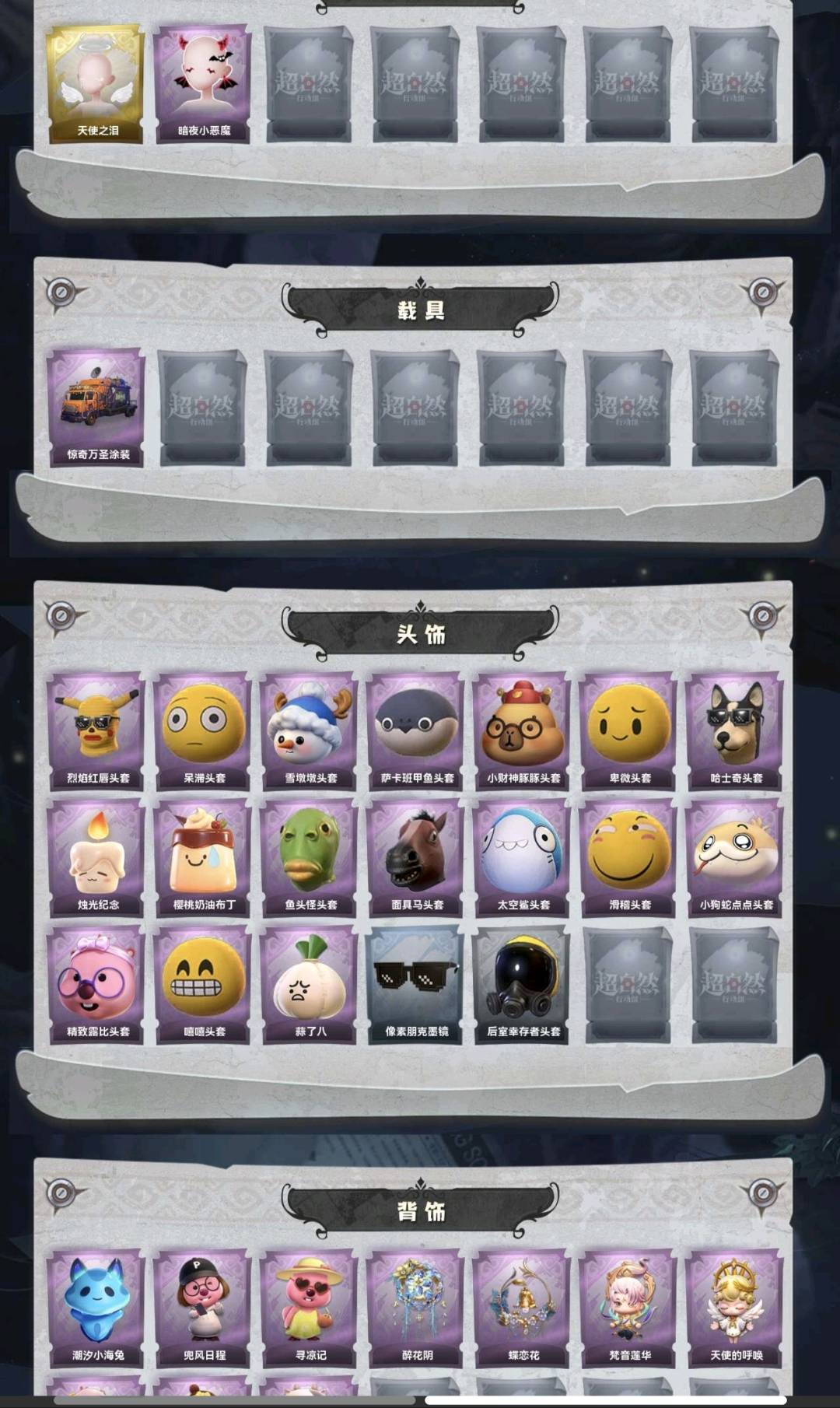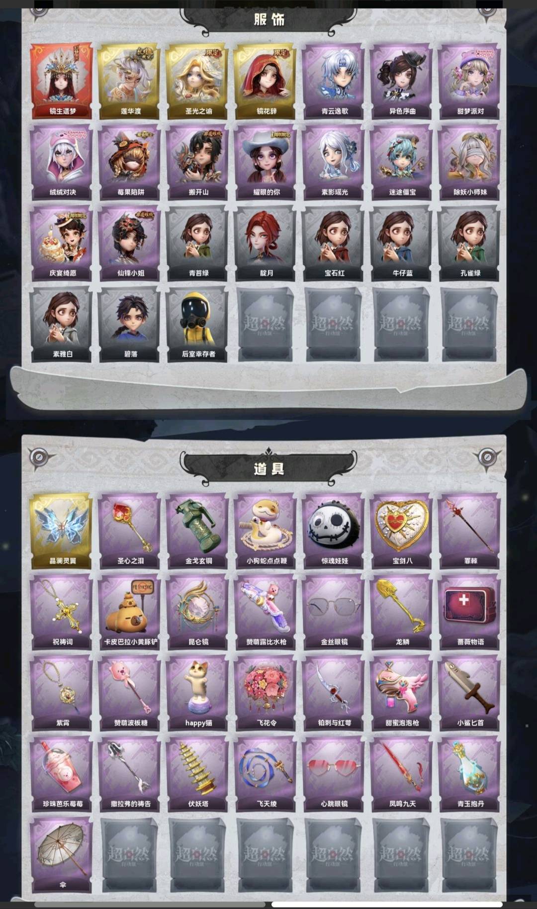 装备描述:兔宝到1.15,红皮1;金皮3;紫皮12;道具皮29;皮肤:巫铃儿-镜生遗梦,逍遥-莲华渡,薇薇安-圣光之谕,巫铃儿-镜花辞,零-青云逸歌,小黄-异色序曲,爱丽丝-甜梦派对,艾伦-绒绒对决,莉莉-莓果陷阱,零-搬开山,爱丽丝-耀眼的你,巫铃儿-素影瑶光,阿念-迷途僵宝,莉莉-除妖小师妹,阿念-庆宴绮愿,薇薇安-仙锋小姐;道具:喷气背包-晶澜灵翼,铲子-圣心之泪,闪光弹-金戈玄铜,长鞭-小狗蛇点点鞭,腰包-惊魂娃娃,腰包-宝剑八,长枪-罪棘,摸金符-祝祷词,铲子-卡皮巴拉小黄豚铲,传送按钮-昆仑镜,短管猎枪-赞萌露比水枪,夜视仪-金丝眼镜,铲子-龙鳞,急救包-蔷薇物语,摸金符-紫霄,铲子-赞萌波板糖,音响-happy猫,额外的背包-飞花令,刺刀-铂刺与红萼,电击枪-甜蜜泡泡枪,刺刀-小鲨匕首,黄牛能量饮料-珍珠芭乐莓莓,铲子-撒拉弗的祷告,葫芦-伏妖塔,长鞭-飞天绫,夜视仪-心跳眼镜,桃木剑-凤鸣九天,黄牛能量饮料-青玉抱丹,伞-伞;美妆:美妆-天使之泪,美妆-暗夜小恶魔;饰品:头饰-烈焰红唇头套,头饰-呆滞头套,头饰-雪墩墩头套,头饰-萨卡班甲鱼头套,头饰-小财神豚豚头套,头饰-卑微头