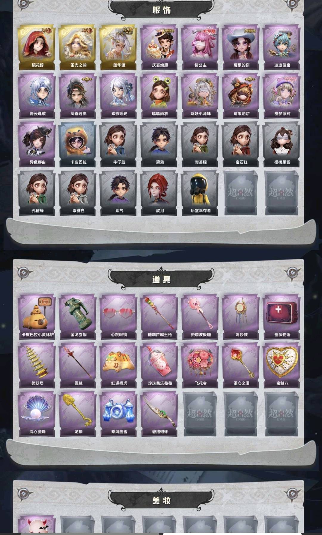 装备描述:兔宝到3.1,金皮3;紫皮12;道具皮18;皮肤:巫铃儿-镜花辞,薇薇安-圣光之谕,逍遥-莲华渡,阿念-庆宴绮愿,莉莉-情公主,爱丽丝-耀眼的你,阿念-迷途僵宝,零-青云逸歌,逍遥-绣春逍影,巫铃儿-素影瑶光,小黄-呱呱雨衣,莉莉-除妖小师妹,莉莉-莓果陷阱,爱丽丝-甜梦派对,小黄-异色序曲;道具:铲子-卡皮巴拉小黄豚铲,闪光弹-金戈玄铜,夜视仪-心跳眼镜,长枪-糖葫芦霸王枪,铲子-赞萌波板糖,音响-鸣沙鼓,急救包-蔷薇物语,葫芦-伏妖塔,长枪-罪棘,腰包-红运福虎,黄牛能量饮料-珍珠芭乐莓莓,额外的背包-飞花令,铲子-圣心之泪,腰包-宝剑八,葫芦-海心凝珠,铲子-龙鳞,喷气背包-乘风溯雪,刺刀-碧络琅环;美妆:美妆-暗夜小恶魔;饰品:头饰-滑稽头套,头饰-嘻嘻头套,头饰-大葱明头套,头饰-念,头饰-鱼头怪头套,头饰-惊魂南瓜头套,头饰-卑微头套,头饰-雪墩墩头套,头饰-烈焰红唇头套,头饰-哈士奇头套,头饰-面具马头套,头饰-火爆了头套,头饰-蒜了八,头饰-精致露比头套,头饰-小财神豚豚头套,头饰-太空鲨头套,头饰-樱桃奶油布丁,头饰-呆滞头套,头饰-萨卡班甲鱼头套,头饰-像素朋