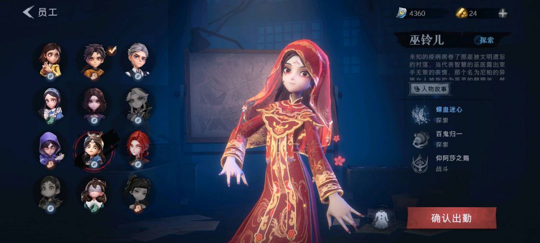 装备描述:金皮1;紫皮1;道具皮1;皮肤:巫铃儿-镜花辞,阿念-庆宴绮愿;道具:音响-鸣沙鼓;饰品:头饰-滑稽头套,头饰-萨卡班甲鱼头套,头饰-呆滞头套,头饰-惊魂南瓜头套,头饰-卑微头套,头饰-哈士奇头套,头饰-鱼头怪头套,头饰-火爆了头套,头饰-念,头饰-嘻嘻头套,头饰-烈焰红唇头套,头饰-面具马头套,头饰-后室幸存者头套,挂饰-糖果守卫,背饰-醉花阴;动作:动作-七仔摇,动作-luvaboy,动作-抬手,动作-举牌,动作-要糖;工牌动作:工牌动作-蜕变;员工:兰,巫铃儿,爱丽丝,爱德华,莉莉,小黄,艾伦,逍遥,阿念,零,薇薇安;累充16元;铲铲币