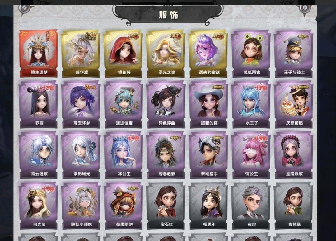 装备描述:红皮1;金皮4;紫皮19;道具皮40;皮肤:巫铃儿-镜生遗梦,逍遥-莲华渡,巫铃儿-镜花辞,薇薇安-圣光之谕,小黄-遗失的童话,小黄-呱呱雨衣,阿念-王子与骑士,小黄-罗丽,巫铃儿-琢玉怀乡,阿念-迷途僵宝,小黄-异色序曲,爱丽丝-耀眼的你,艾伦-水王子,阿念-庆宴绮愿,零-青云逸歌,巫铃儿-素影瑶光,爱丽丝-冰公主,逍遥-绣春逍影,艾伦-黎明猎手,莉莉-情公主,爱丽丝-丝缕哀歌,薇薇安-白光莹,莉莉-除妖小师妹,莉莉-莓果陷阱;道具:喷气背包-晶澜灵翼,腰包-月下莲台,葫芦-伏妖塔,长鞭-飞天绫,刺刀-碧络琅环,腰包-宝剑八,额外的背包-飞花令,急救包-蔷薇物语,音响-鸣沙鼓,喷气背包-乘风溯雪,专业手电-花束般的告白,除颤仪-弦外之音,摸金符-祝祷词,长枪-波塞冬,音响-happy猫,闪光弹-金戈玄铜,长鞭-缚誓之锁,专业手电-云端梦想计划,除颤仪-冰晶般的代价,传送按钮-幻宠之门,短管猎枪-星光的裁决,短管猎枪-赞萌露比水枪,桃木剑-凤鸣九天,腰包-惊魂娃娃,传送按钮-昆仑镜,刺刀-紫气东来,长鞭-小狗蛇点点鞭,摸金符-花落精绝,电击枪-甜蜜泡泡枪,摸金符-紫霄,夜视仪-金丝眼镜