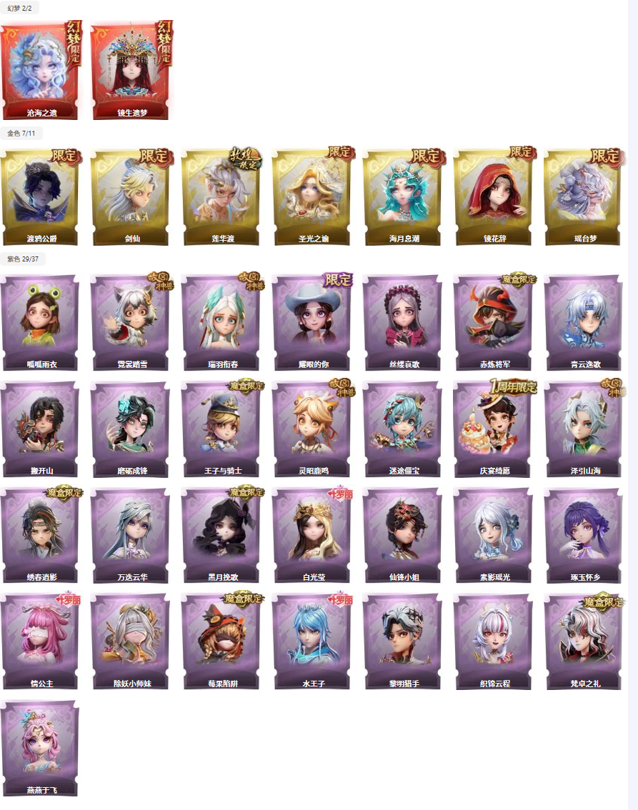 ✨满图鉴✨2红7金29紫✨非遗皮沧海之遗✨剑仙✨莲华渡✨瑶台梦✨渡鸦✨赤炼将军✨泽引山海✨绣春逍影✨