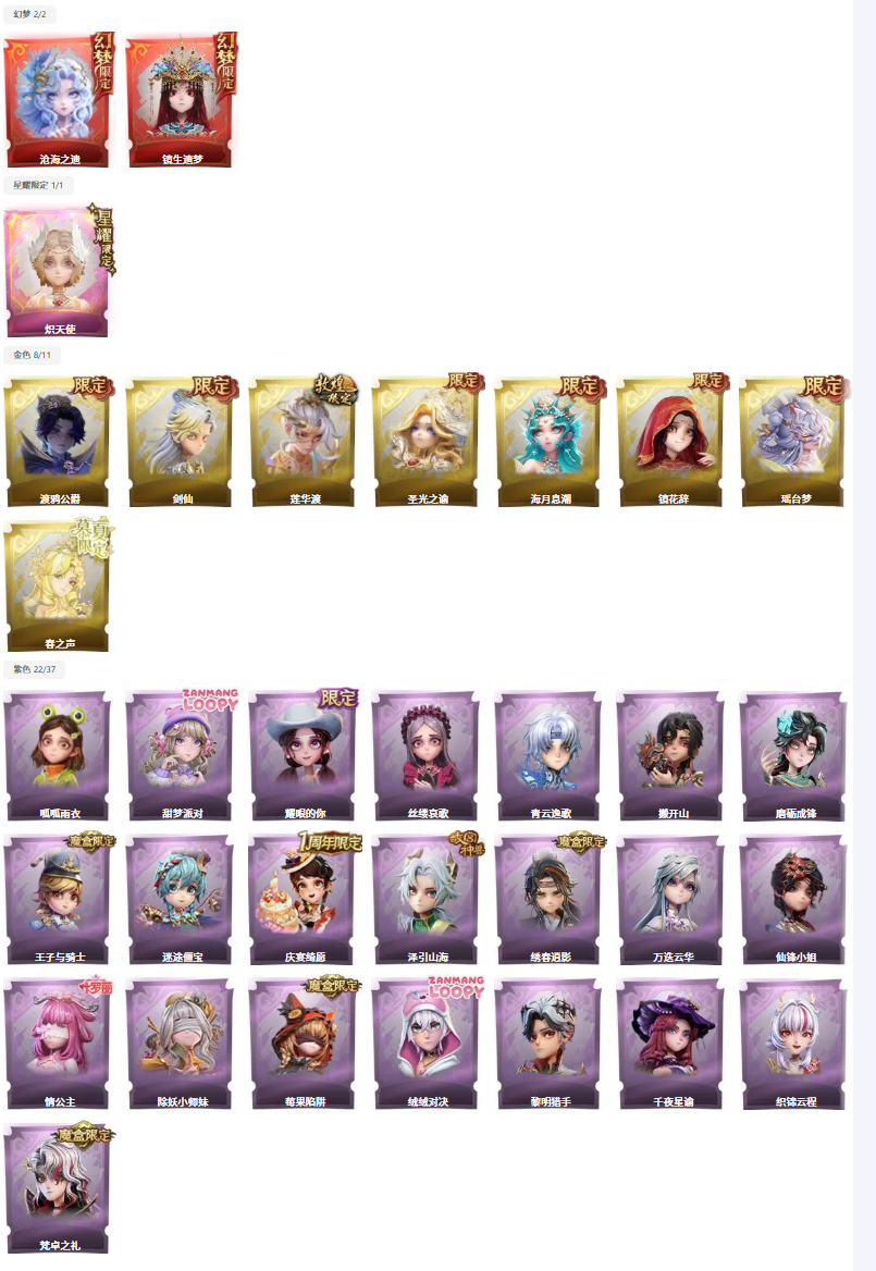 ✨满图鉴✨晶澜灵翼✨3红8金22紫✨非遗皮沧海之遗✨剑仙✨莲华渡✨瑶台梦✨渡鸦✨泽引山海✨绣春逍影✨