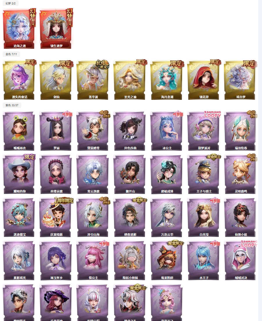 ✨满图鉴✨晶澜灵翼✨2红7金33紫✨非遗皮沧海之遗✨海月✨剑仙✨莲华渡✨瑶台梦✨泽引山海✨绣春逍影✨