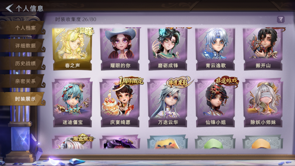 装备描述:兰-春之声 零-磨砺成锋 阿念-迷途僵宝 薇薇安-仙锋小姐 零-青云逸歌 零-搬开山 莉莉-除妖小师妹 兰-千夜星谕 逍遥-万迭云华 阿念-庆宴绮愿 爱丽丝-耀眼的你 爱德华-梵卓之礼 铲子-龙鳞 桃木剑-绯色遗证 伞-郁金春信 铲子-撒拉弗的祷告 传送按钮-逆时审判 腰包-月下莲台 音响-happy猫 荧光棒-桃心 摸金符-紫霄 音响-咏叹调 摸金符-海洋之心 长枪-波塞冬 除颤仪-冰晶般的代价 传送按钮-浮生一梦 折扇-露露扇 专业手电-花束般的告白 闪光弹-金戈玄铜